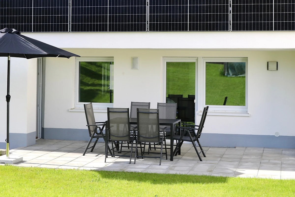 Für den abendlichen Schlummertrunk ist die schöne Terrasse ideal. Die gut ausgestattete Küche besitzt unter anderem einen Kühlschrank, einen Herd zum Kochen und sogar eine Spülmaschine.