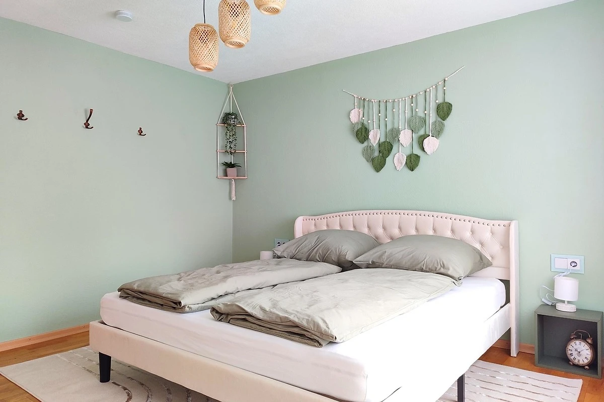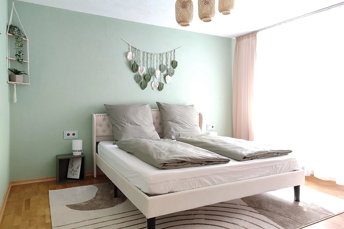In unserem Apartment erwartet dich ein gemütliches Schlafzimmer mit einem grosszügigen 1,80m Bett für erholsame Schlummerträume auf der superbequemen EMMA Matratze. Und falls du Begleitung mitbringst, steht euch das Sofabett, das sowohl als Sofa als auch als Bett superbequemen Sitz- oder Liegekomfort bietet, da es mit hochwertigen Matratzen ausgestattet, bereit.