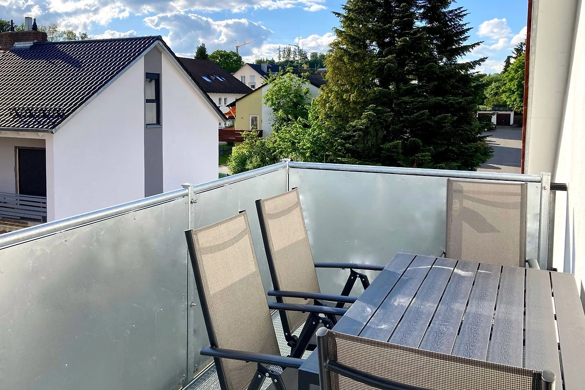 Der Balkon bietet frische Luft und Entspannung direkt an der Ferienwohnung. Die gut ausgestattete Küche besitzt unter anderem einen Kühlschrank, einen Herd zum Kochen und sogar eine Spülmaschine.