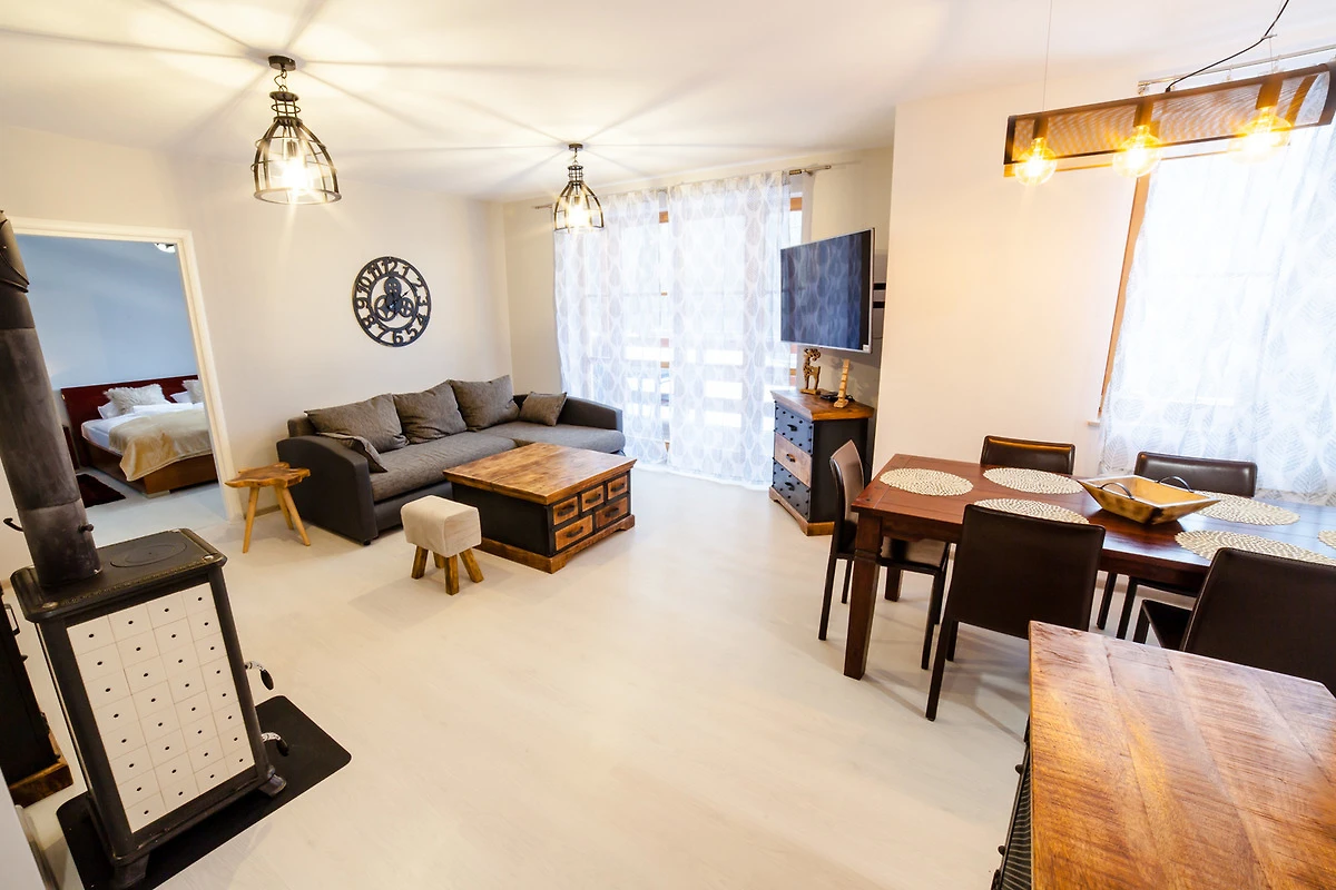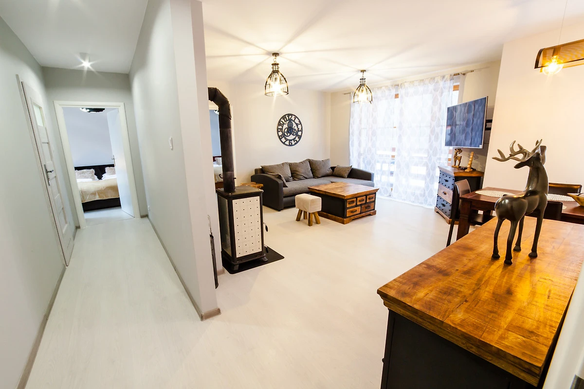 Zu den gewählten Apartments darf man mit dem Hund ankommen. Die zusätzlichen Kosten des Aufenthalts mit einem vierbeinigen Freund betragen 100 zł (Einzelgebühr). Die Gäste, die den Aufenthalt mit dem Hund planen, bitten wir um eine frühere Kontaktaufnahme mit unserem Service im lokalen Büro.