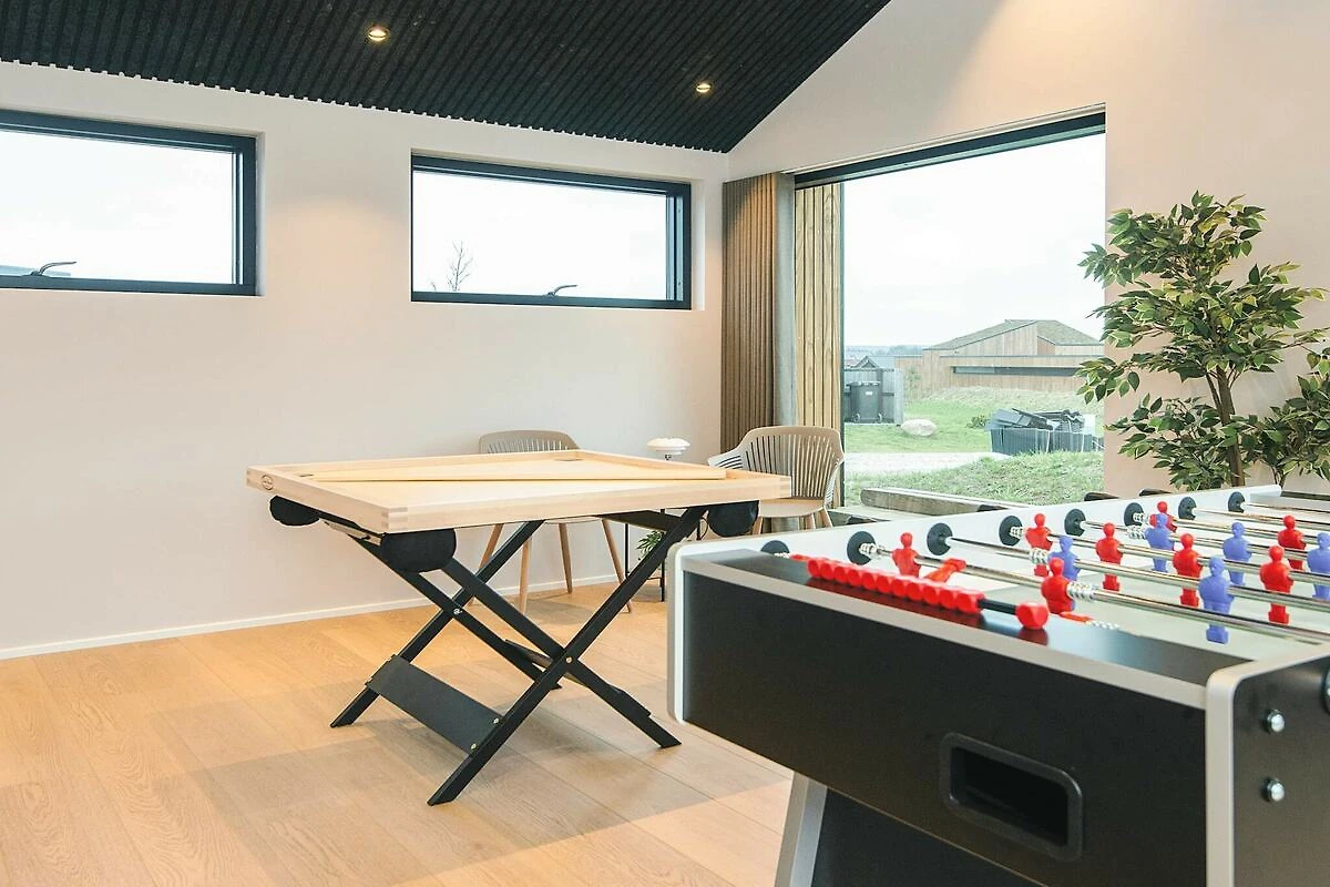 Wohnzimmer(Trockner, Waschmaschine), Küche(Kochherd(elektrisch), Kochherd(2 Kochplatten), Kaffeemaschine, Spülmaschine, Tiefkühlschrank(60-99L)), Wohn-/Schlafzimmer(TV(Deutsch Fernsehsender, dänische Fernsehsender)), Schlafzimmer(Doppelbett), Schlafzimmer(Doppelbett), Schlafzimmer(Doppelbett), Schlafzimmer(Doppelbett), Badezimmer(Waschbecken, Dusche, Toilette), Badezimmer(Waschbecken, Dusche, Toilette), Empore(Doppelklappbett ), Empore(Doppelklappbett ), Empore(Doppelklappbett ), Heizung(elektrisch), Garten, Tischtennisplatte, Tischfußball, Luft-Wasser-Wärmepumpe
