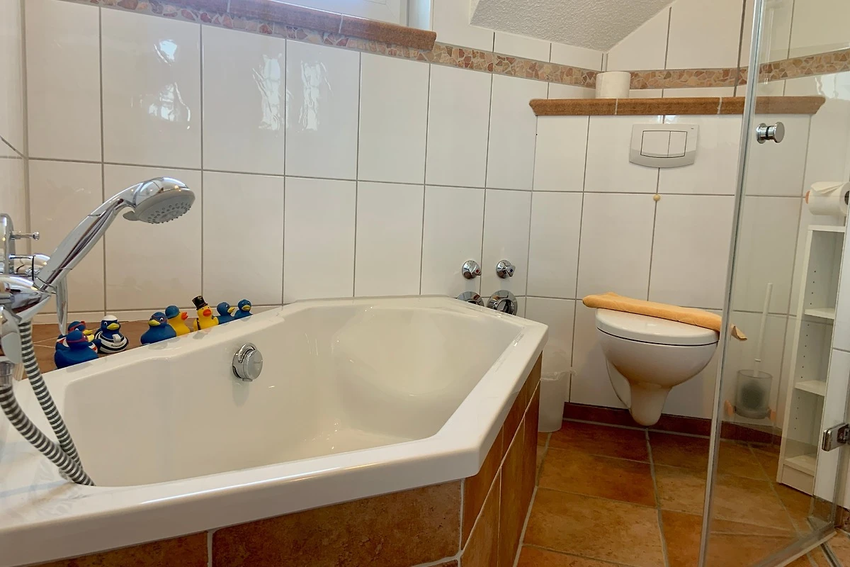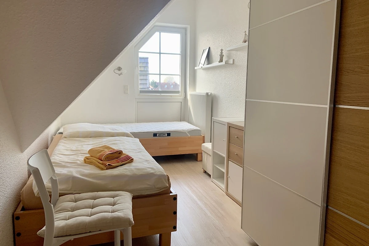 Die Ferienwohnung hat 2 Schlafzimmer und 2 Badezimmer , die Schlafzimmer befinden sich im Dachgeschoss.
