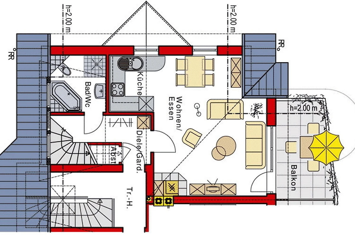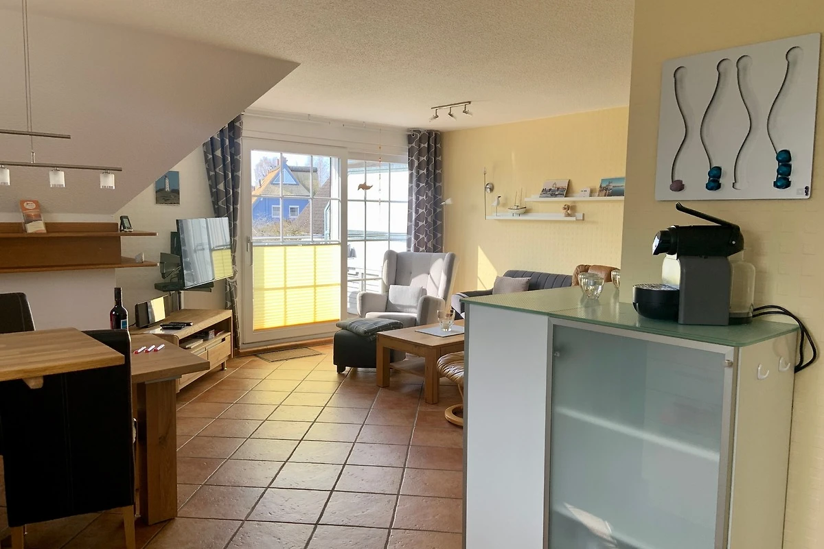 Die Ferienwohnung erstreckt sich über 2 Etagen, ca. 65 m² Wohnfläche mit Fussbodenheizung, offenem Kamin, grossem Südbalkon mit Elektromarkise.