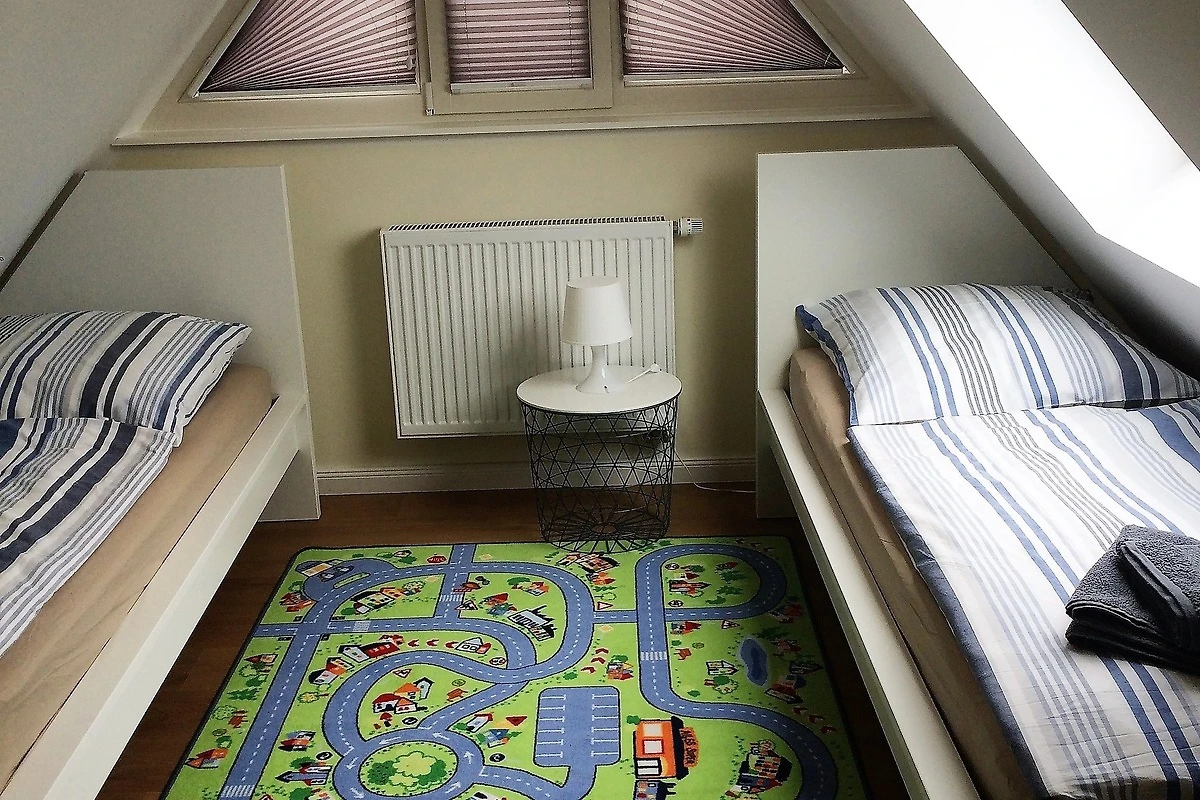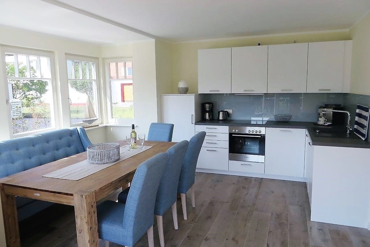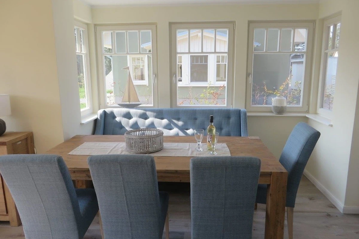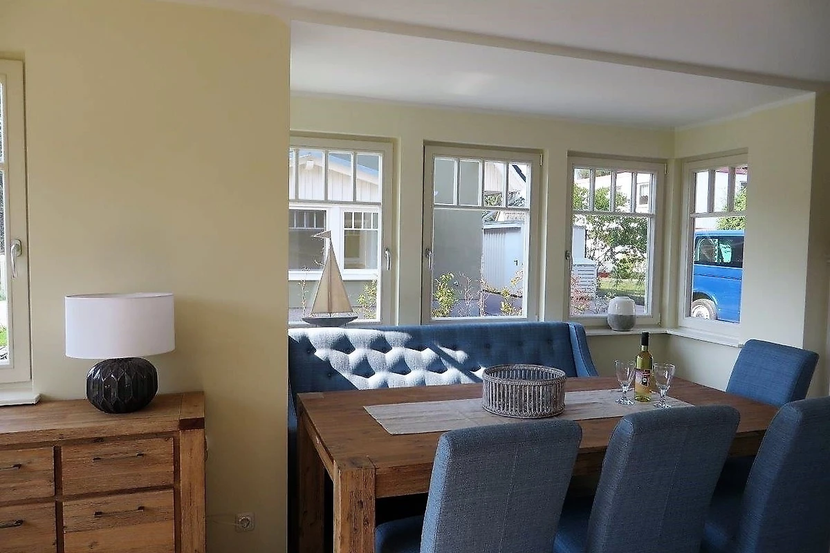 Die Doppelhaushälfte Ankerplatz ist für einen Urlaub mit bis zu 8 Personen ideal. Nicht nur die absolut ruhige Lage sondern ebenfalls die komfortable Ausstattung bieten Grundlage für pure Entspannung. Grosszügige Terrasse, 2 Bäder, 4 Schlafzimmer, eine vollausgestattete Küche, 3 Parkplätze, ein Kaminofen sowie eine Aussensauna im Garten garantieren einen gelungenen Urlaub. An ein Drahtlosnetzwerk (kostenlos) sowie einen Bollerwagen im abschliessbaren Fahrradschuppen wurde ebenso gedacht. Aus hygienischen Gründen wird dieses Haus nicht mit Haustieren vermietet, ebenso bitten wir nicht im Haus zu rauchen.