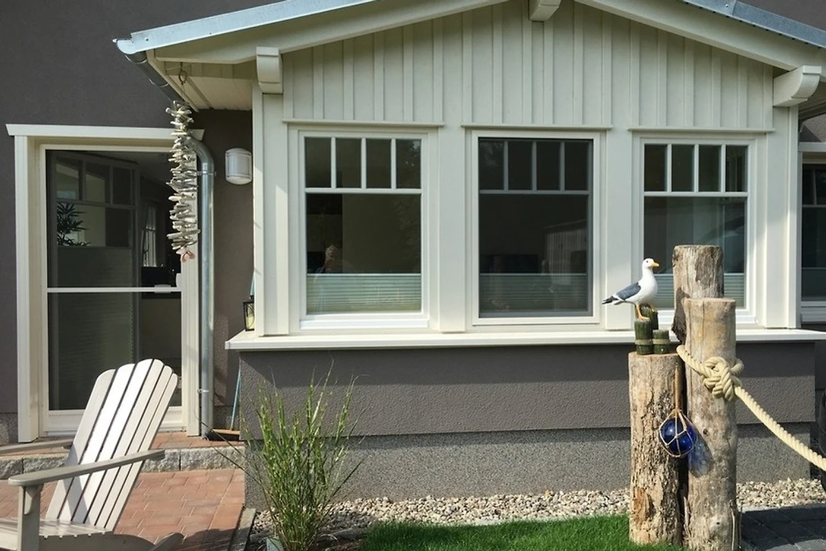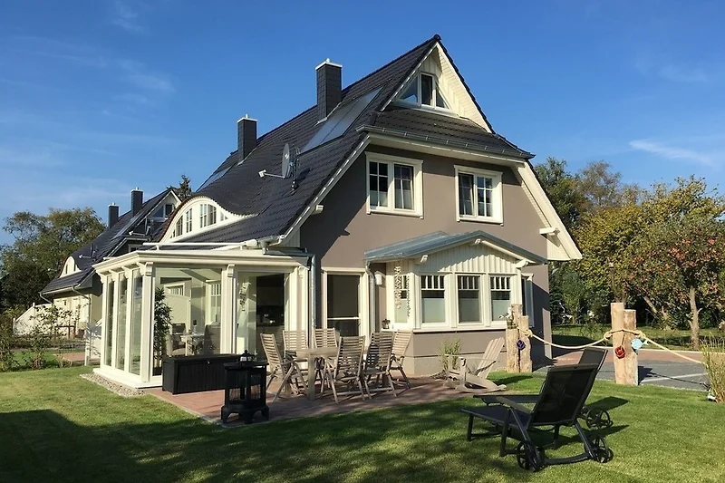 Unser im August 2016 gebautes Ferienhaus (eine Doppelhaushälfte mit Einzelhauscharakter) für 8 Personen liegt im Herzen einer bemerkenswerten Landschaft, zwischen dem Bodden und der Ostsee. Zu jeder Jahreszeit können Sie hier bei uns Natur und regionale Kultur pur erleben. Im Nu haben Sie Ihre Alltagssorgen vergessen und schalten um auf Erholung.