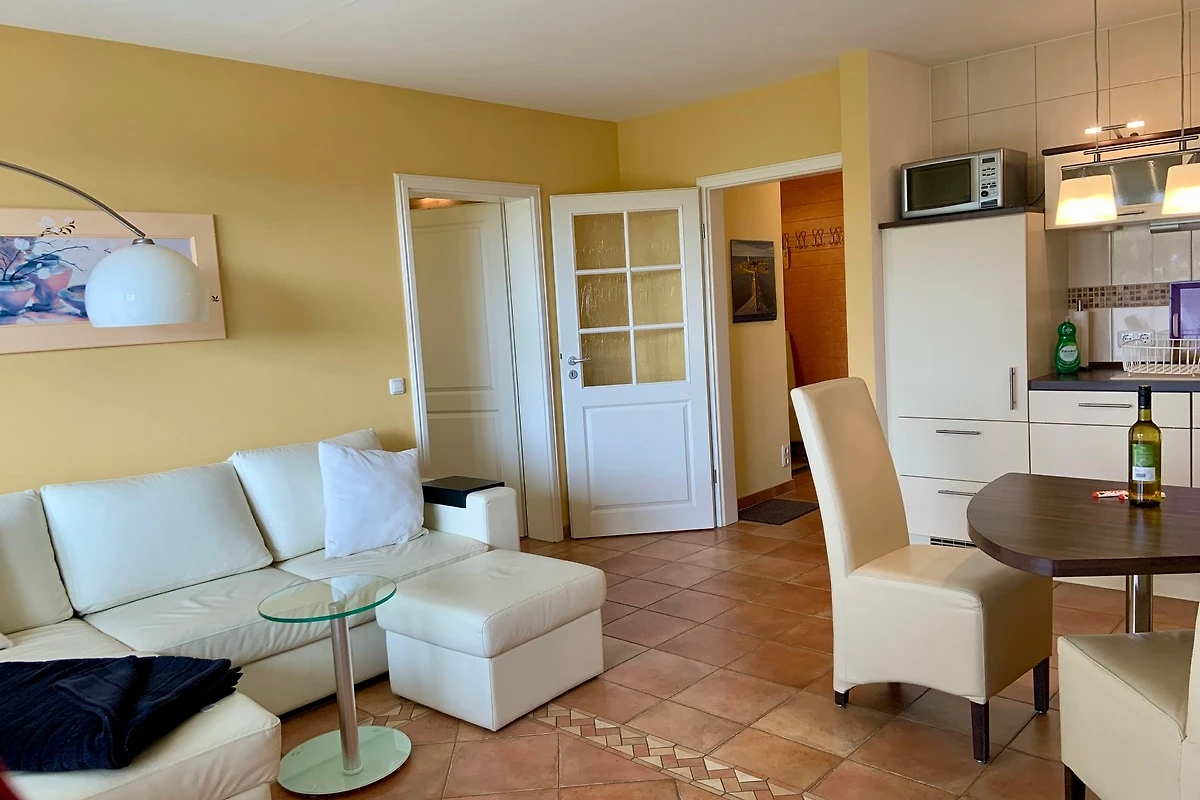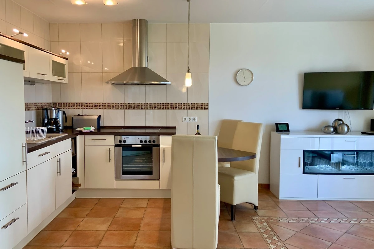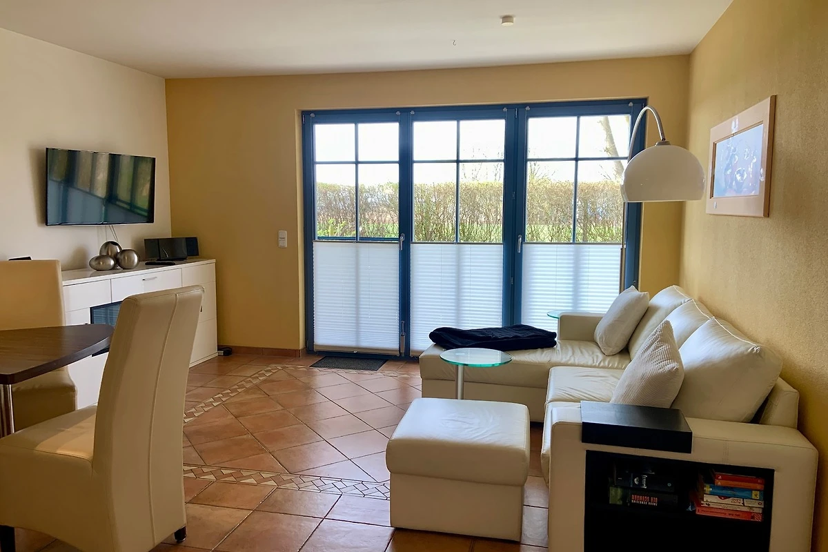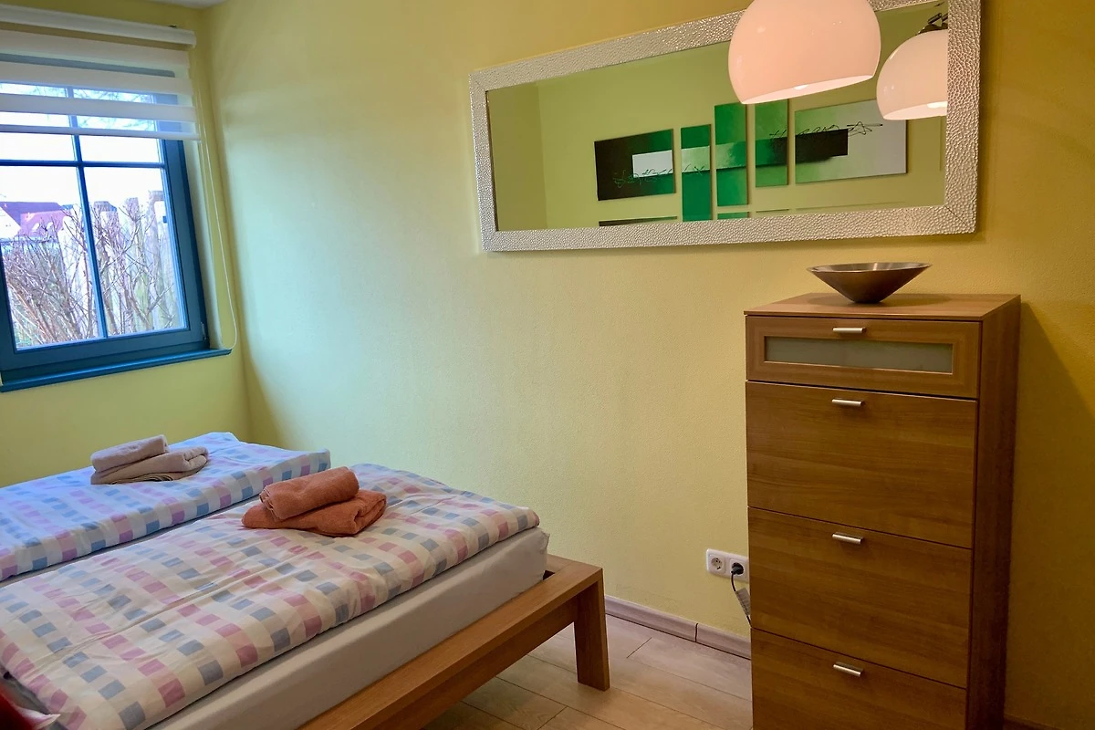 Sie erwartet eine modern vollausgestattete, absolut ruhig gelegene Wohnung in direkter Boddennähe. Geniessen sie Abende auf der Terrasse, profitieren von der umfassend ausgestatteten Küche oder machen sie es sich auf der Couch mit Ottamane einfach nur bequem. Fahren sie Fahrrad auf dem Deich rundum Zingst oder sitzen einfach nur am nur wenige Meter entfernten Bodden mit dem Charme des Sonnenauf- oder Unterganges. Geniessen sie den Ein- und Ausflug der Kraniche am Bodden.