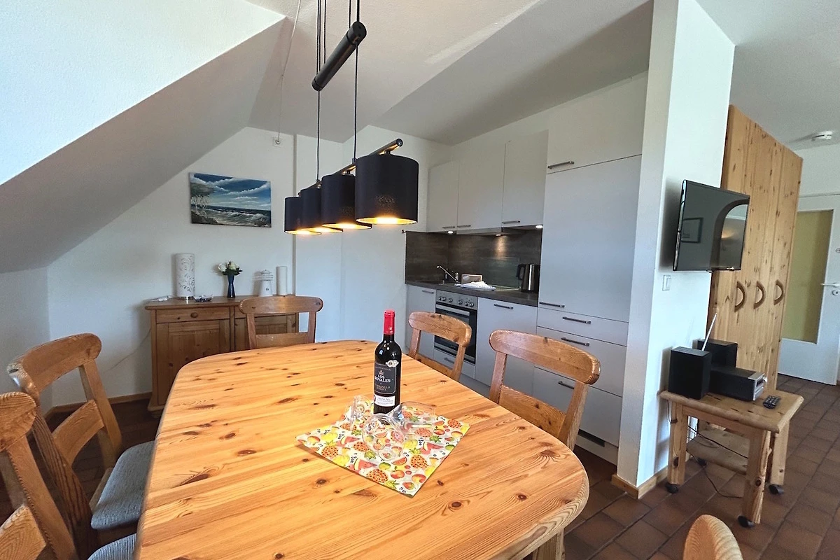 Die Ferienwohnungen bestehen aus zwei Zimmern mit 54 qm für zwei bis vier Personen oder drei Zimmer-Maisonette mit 75 qm für zwei bis sechs Personen und sind voll möbliert.