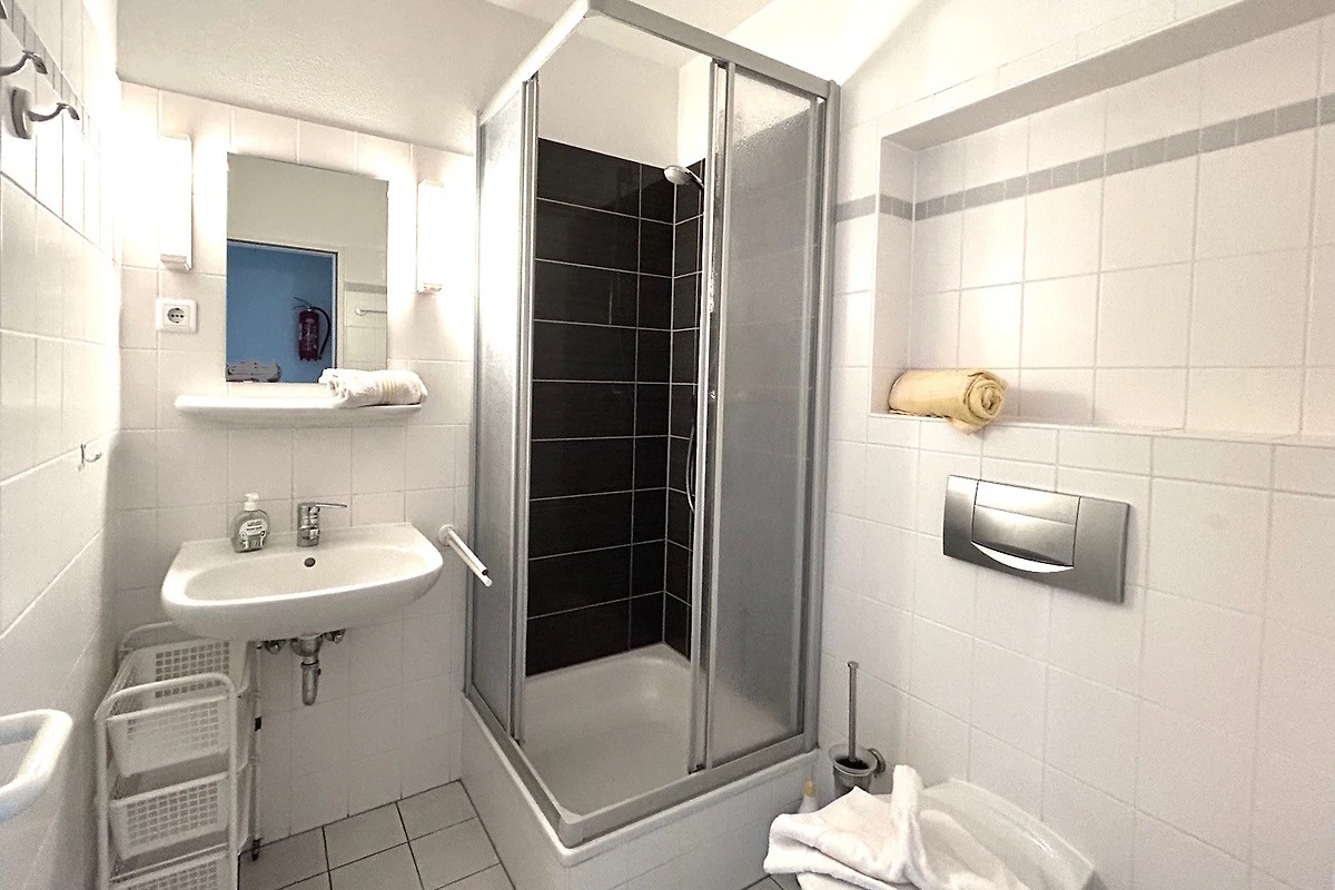 WLAN über ein gesichertes Netwerk können Sie in allen Wohnungen empfangen. Zu unserem Service gehören bezogene Betten und Handtücher.
