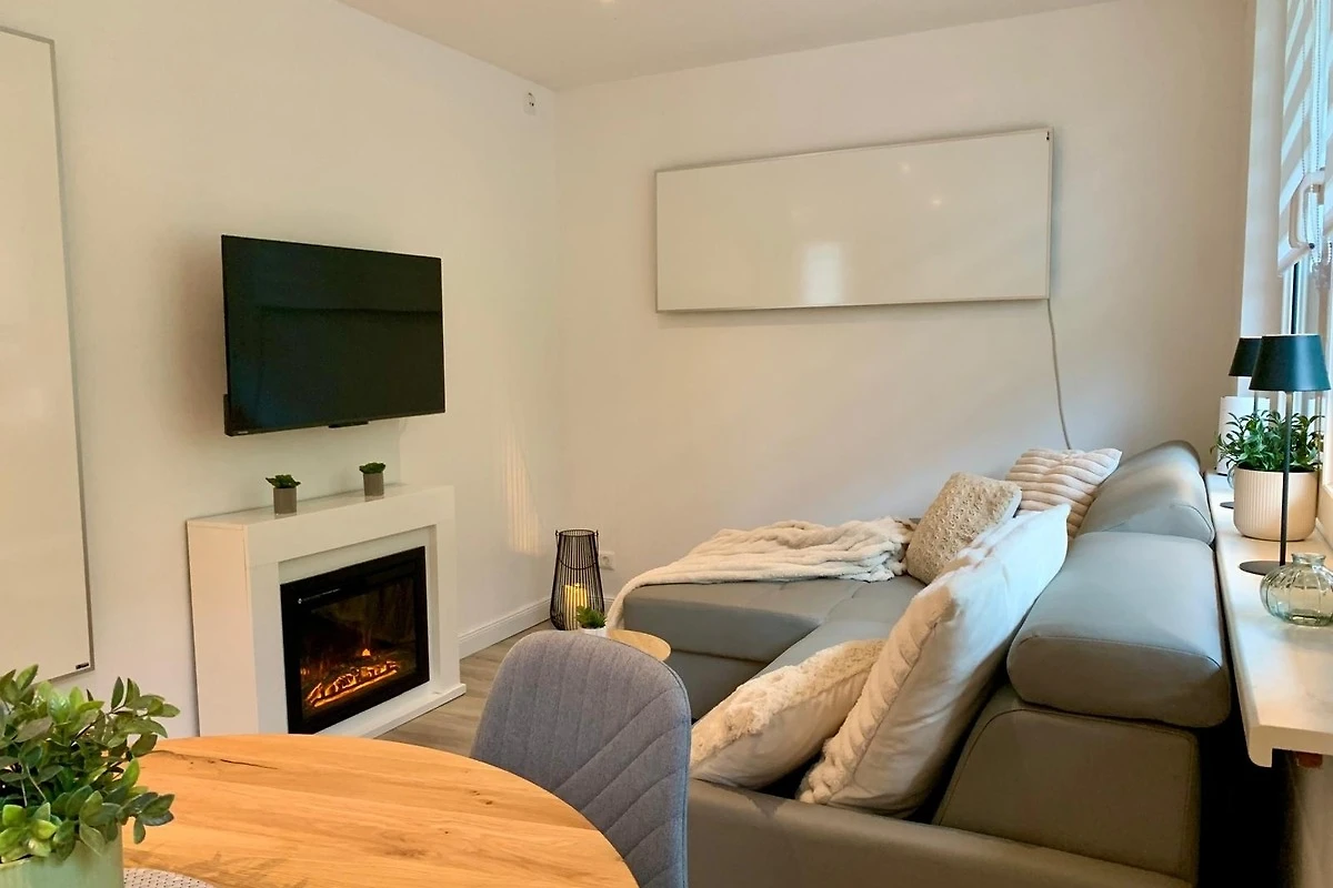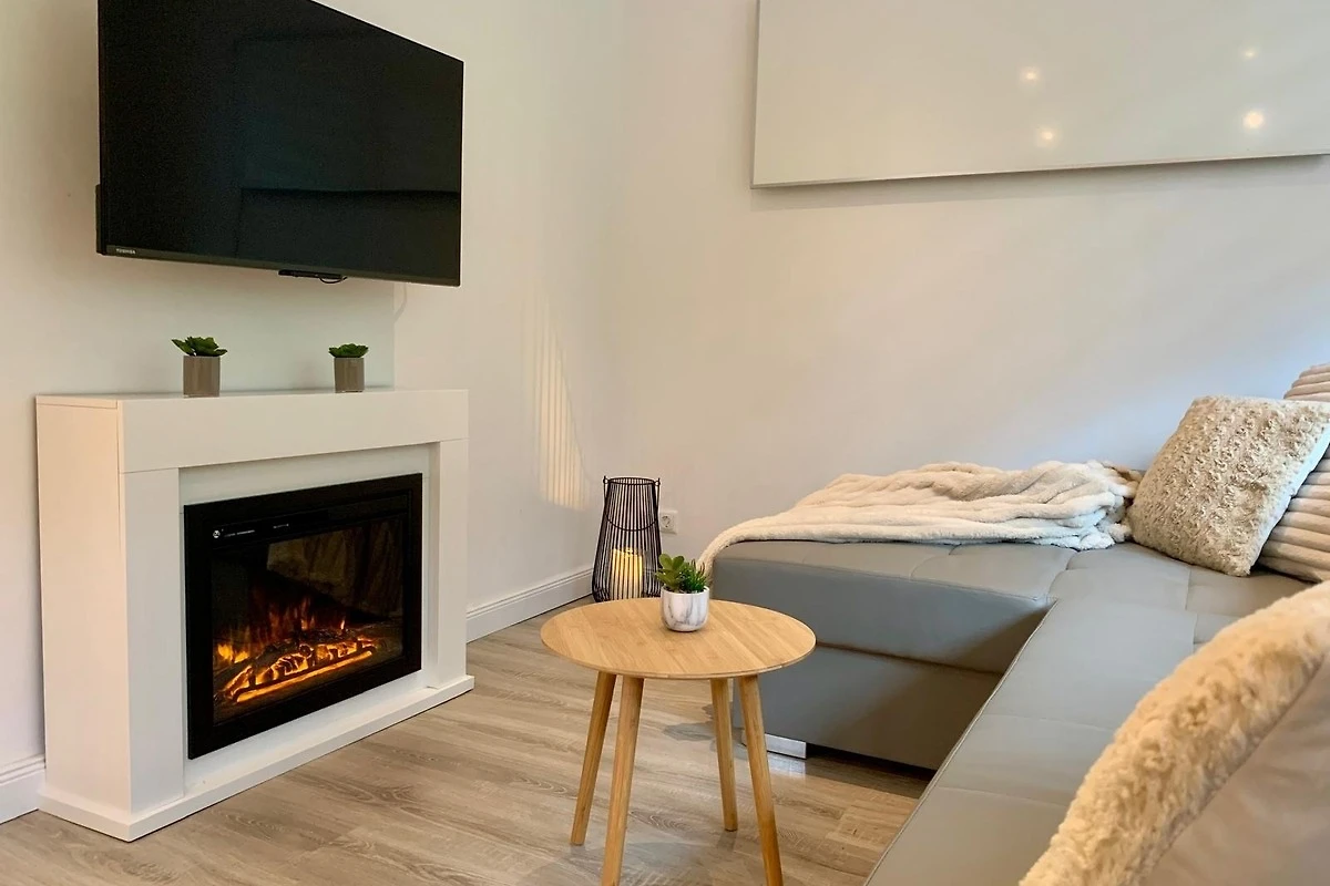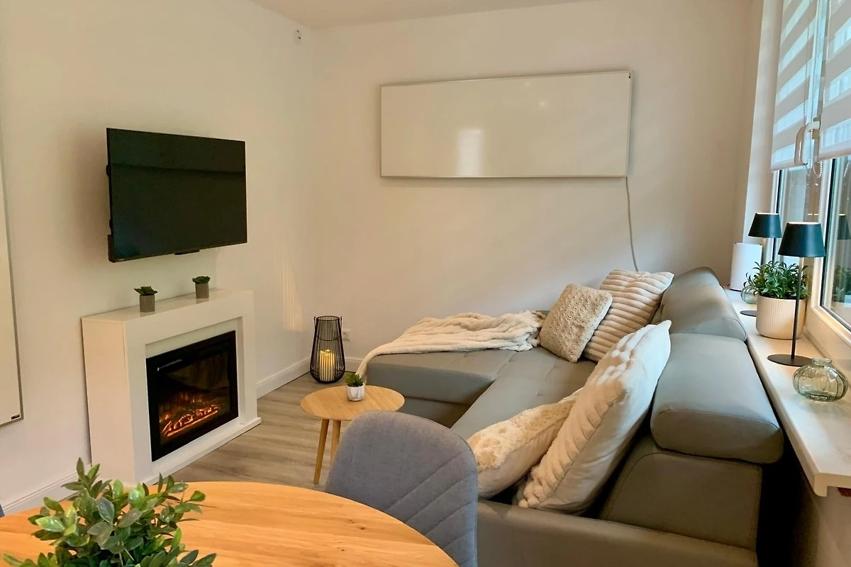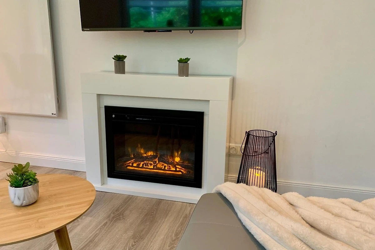 - einen gemütlichen Wohnbereich mit TV & Kamin - perfekt für kuschelige Abende zu zweit