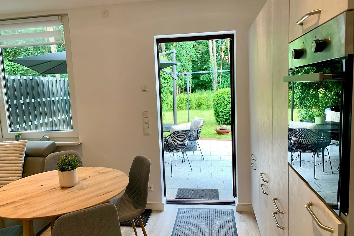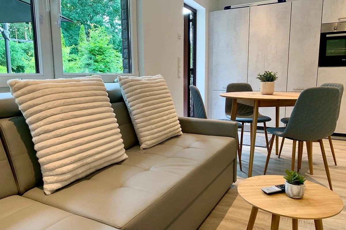 Unser exklusives kleines Ferienhaus wurde 2023 innen komplett modernisiert und bietet euch einen gemütlichen Wohnbereich und einen eigenen, umzäunten Garten am Wald.