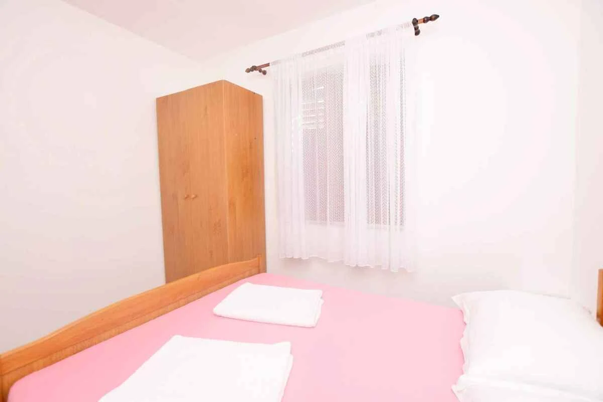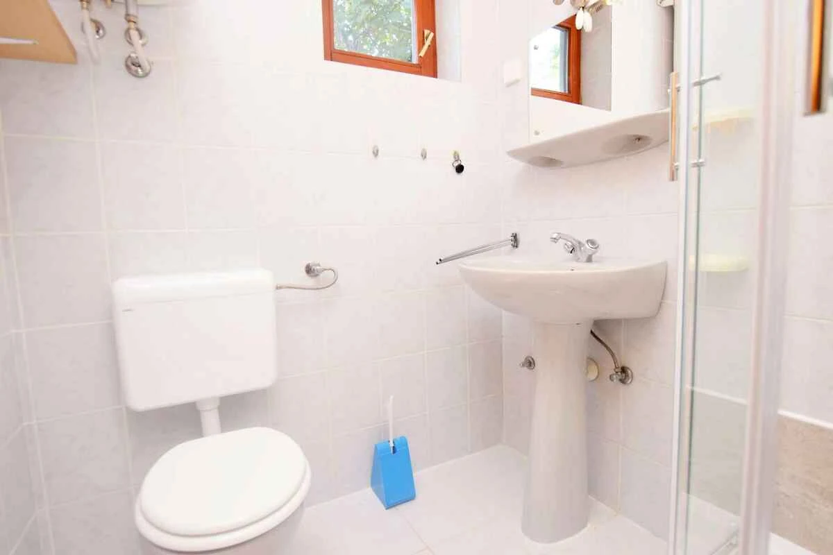 Nin. Die Ferienwohnung befindet sich auf einem geschlossenen Gartengrundstück mit Sträuchern und Bäumen, von einer Mauer begrenzt. Der Vermieter wohnt nur zeitweise im Haus, nutzt jedoch einen separaten Eingang. Aussicht: ruhige Strasse. Die Zufahrt erfolgt über eine Nebenstrasse (asphaltiert). Parkplatz auf der Strasse vor dem Haus.