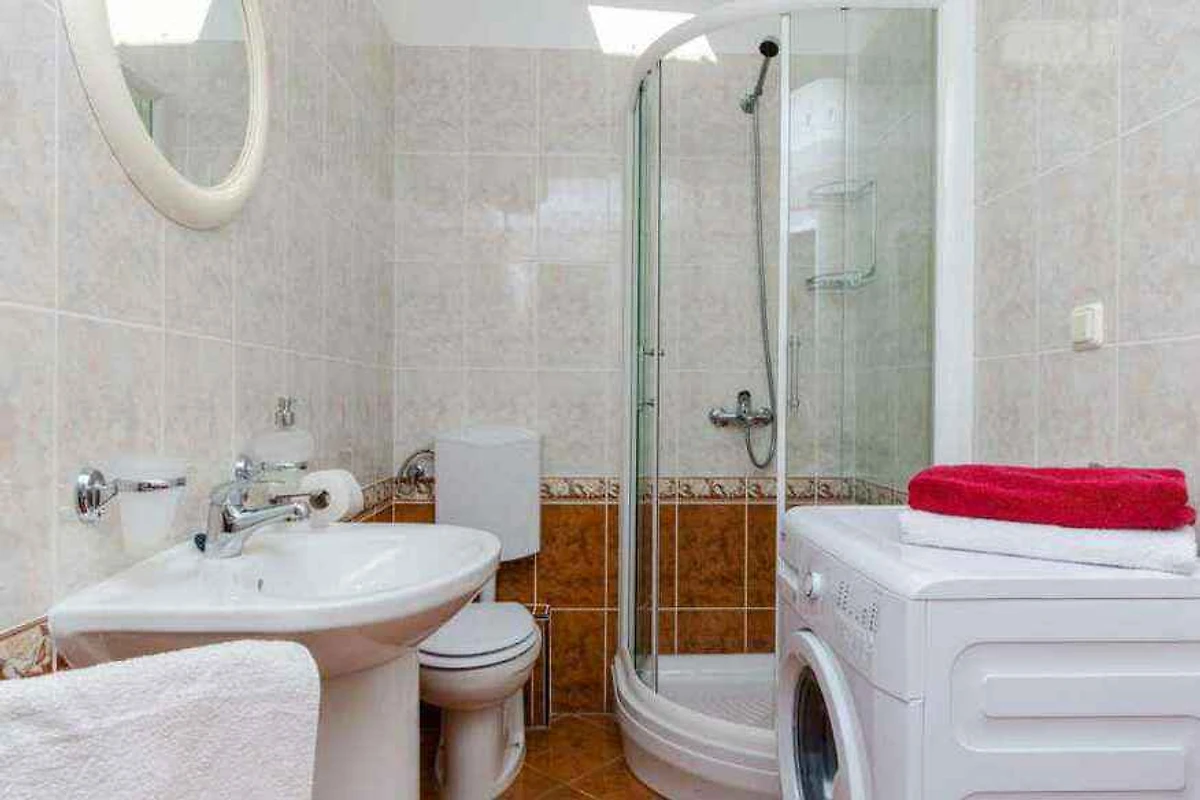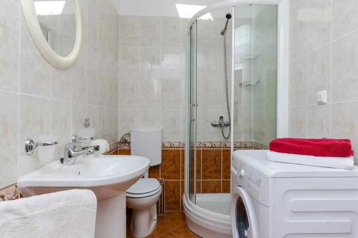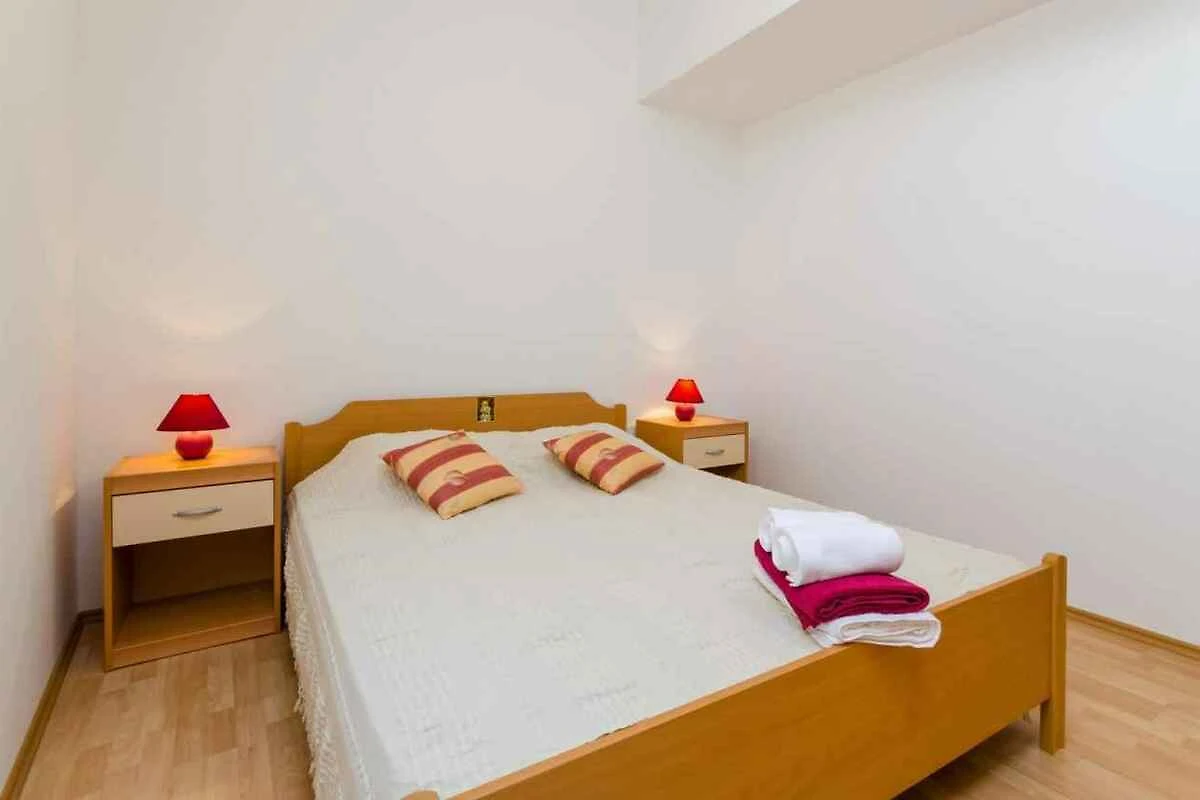 Selce. Die Ferienwohnung befindet sich auf einem geschlossenen Grundstück. Der Vermieter wohnt nicht im Haus oder auf dem Grundstück. Die Zufahrt erfolgt über eine Nebenstrasse (asphaltiert). Parkplatz auf einem Parkplatz im Ort (Entfernung 300 m).