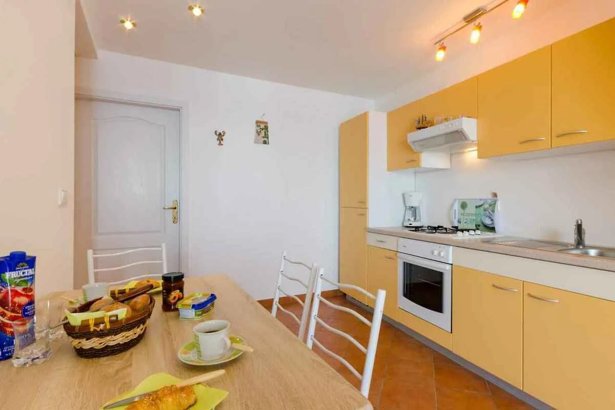 Die Ferienwohnung befindet sich in einem Apartementhaus und ist modern eingerichtet. Das Grundstück liegt in belebter Umgebung. Auch wegen des Ausblicks vom Grundstück auf das Meer und der sonnigen Lage am Wasser ist das Domizil beliebt. Zur alleinigen Nutzung stehen zur Verfügung: Sonnenliege, Terrasse und Gartenmöbel. Die Terrasse verfügt über eine Markiese, Bestuhlung für alle Personen, eine Sonnenliege und einen fantastischen Blick aufs Meer und den Hauptplatz von Selce.