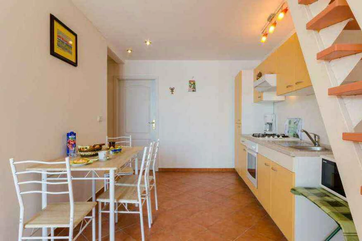 Der Eingang in Ihre Ferienwohnung führt über eine Innentreppe. Wohnzimmer mit TV, Zugang zur Terrasse und Terrasse mit Meerblick. 2 Schlafzimmer jeweils mit 1 Doppelbett und mit Laminat. Küche mit Gasherd, Backofen, Dunstabzugshaube, Kühlschrank, Mikrowelle und Kaffeemaschine. Bad mit Dusche, 1 Waschbecken und WC.
