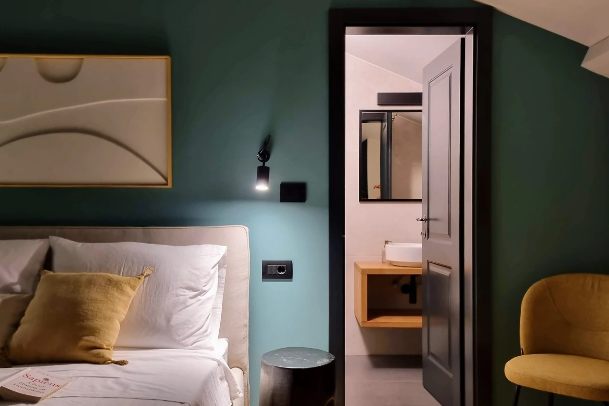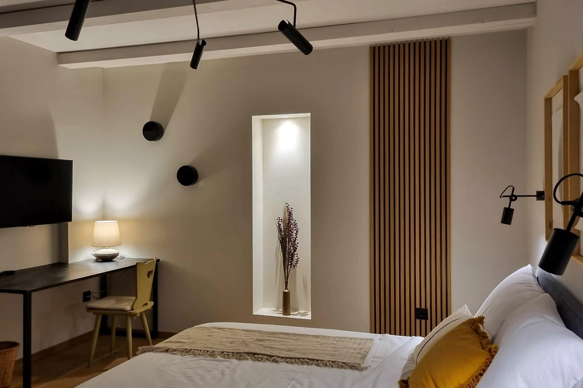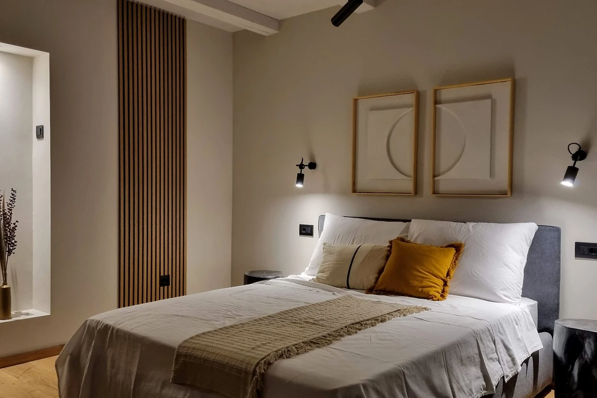 In der ersten Etage befinden sich 2 Schlafzimmer und 1 Badezimmer, und in der zweiten Etage gibt es 2 Schlafzimmer mit eigenem Bad und eine grosse Terrasse. Auch hier wird ein moderner, minimalistischer Stil mit traditionellen Details und entspannenden Farben kombiniert. So haben Sie Ihre eigene Oase der Ruhe in der Villa, ganz gleich, welches Zimmer Sie wählen. Für absoluten Komfort sind alle Zimmer und Badezimmer mit Fussbodenheizung ausgestattet. Die Zimmer sind klimatisiert und mit einem Fernseher ausgestattet, zwei Zimmer verfügen über einen Schreibtisch. Der moderne Minimalismus des Badezimmers wird Ihnen ebenfalls ein luxuriöses Entspannungserlebnis bieten. Alle Bäder haben eine begehbare Dusche und sind mit einem Haartrockner ausgestattet.