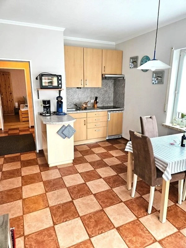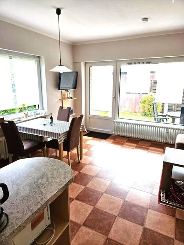 Diese modern eingerichtete Ferienwohnung bietet optimale Voraussetzungen für erholsame Tage. Der grosszügige Wohnbereich mit einem Sofa lädt zum Entspannen ein, während das Wohnschlafzimmer mit einem Doppelbett und einem Einzelbett komfortable Schlafmöglichkeiten bietet. Die offene Küche ist bestens ausgestattet mit Elektro-/Gasherd, Backofen, Mikrowelle, Kühlschrank, Kaffeemaschine, Espressomaschine, Gefriermöglichkeit, Toaster und Wasserkocher, sodass alle kulinarischen Wünsche erfüllt werden. Ein Esstisch sorgt für gesellige Stunden. Das Badezimmer überzeugt mit einer bodengleichen Dusche und einem Fenster, das für Tageslicht sorgt. Zur Unterhaltung steht eine HiFi-Anlage sowie ein TV zur Verfügung. Die Wohnung ist allergikergeeignet und verfügt über kostenfreies WLAN. Ein Parkplatz ist ebenfalls vorhanden. Zusätzliche Annehmlichkeiten wie Brettspiele, Garderobe und Wäscheständer runden das Angebot ab und machen den Aufenthalt besonders angenehm.