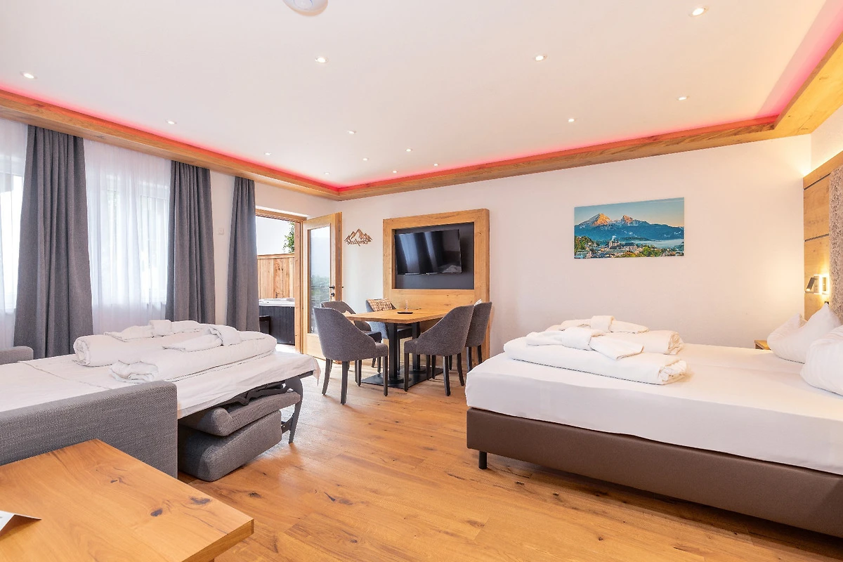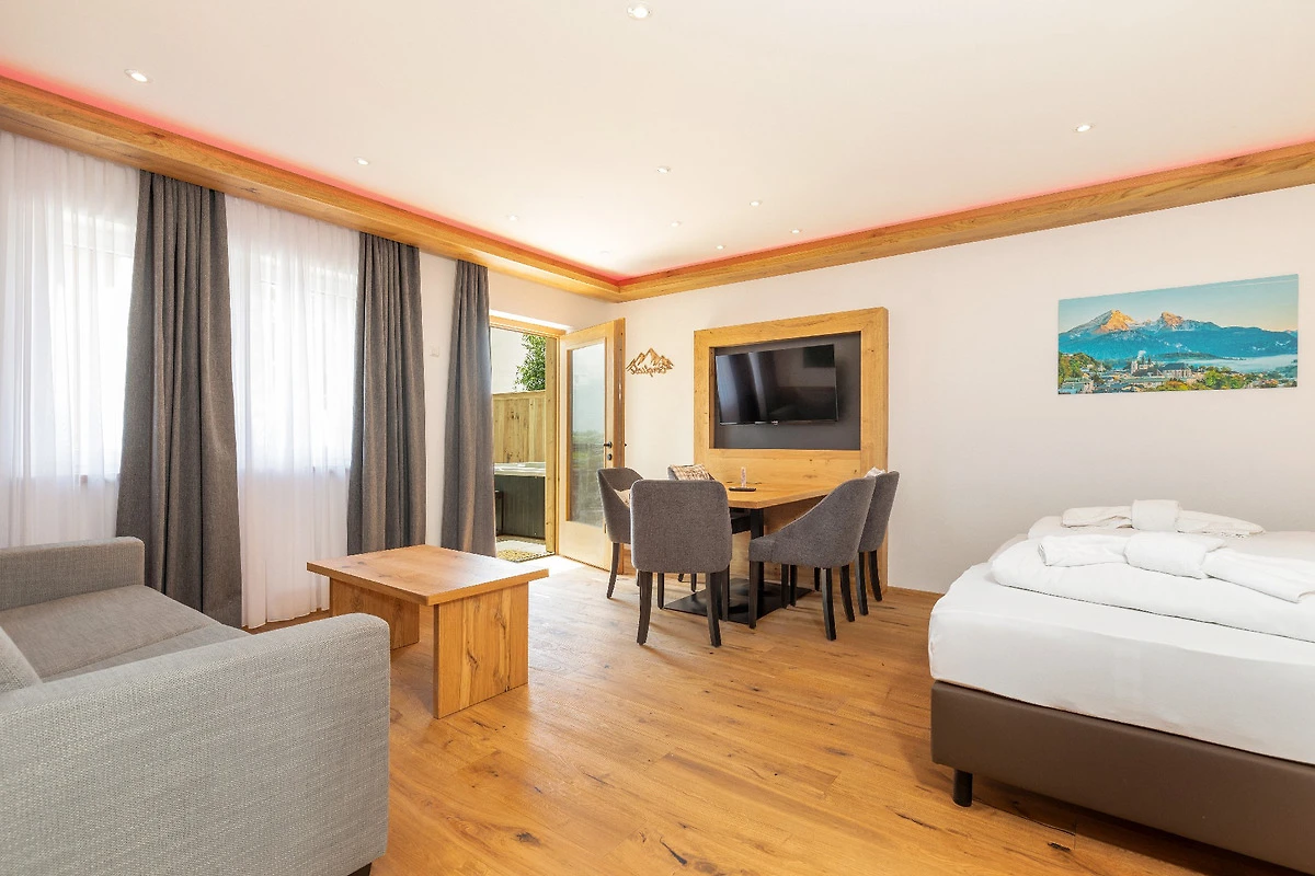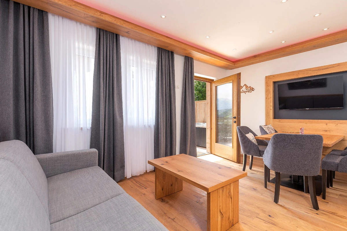 Geniessen Sie im Appartement neben einer hochwertigen Ausstattung auch eine voll ausgestattete Küche und einen Zugang zur eigenen Terrasse mit herrlichem Ausblick und eigenem, ganzjährig beheiztem Whirlpool.