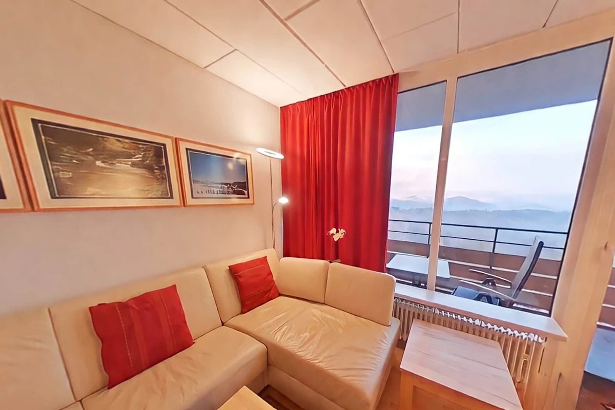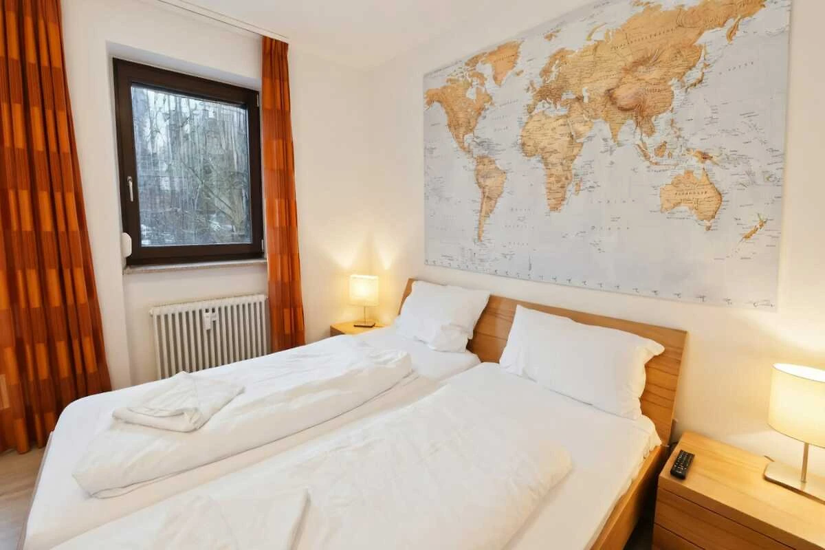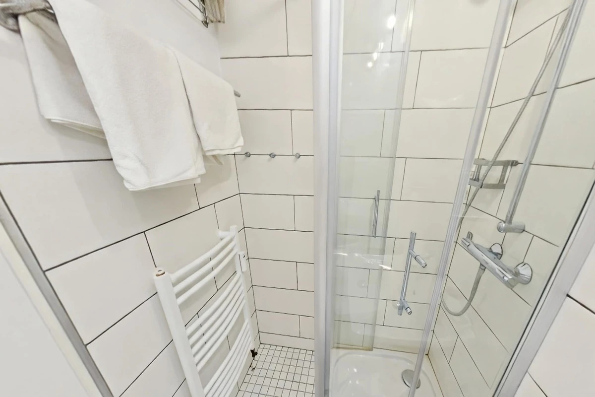 In der 7. Etage: (Küche(Kochplatte(4 Kochplatten, Ceranfeld), Wasserkocher, Toaster, Kaffeemaschine, Backofen, Mikrowelle, Spülmaschine, Kühlschrank(+ Gefrierfach)), Wohn/Esszimmer(Schlafcouch 1 Pers., Schrankbett für 2 Personen, TV(Kabel, Flatscreen), Esstisch), Schlafzimmer(Doppelbett(180 x 200 cm)), Badezimmer(Dusche, Waschbecken, Toilette, Föhn), Balkon)