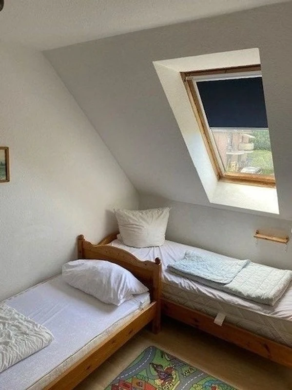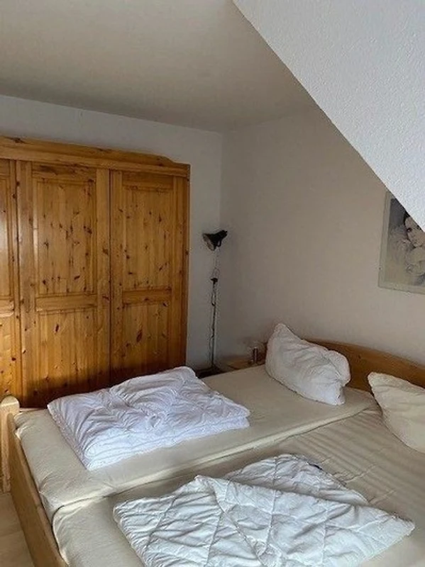 Das Reihenhaus besteht aus einem Wohnraum mit Essecke und einem Farb-TV, einer Küchenzeile, einem Schlafzimmer mit Doppelbett, einem weiteren Schlafzimmer mit 2 Einzelbetten, sowie einem Badezimmer mit Dusche und WC.