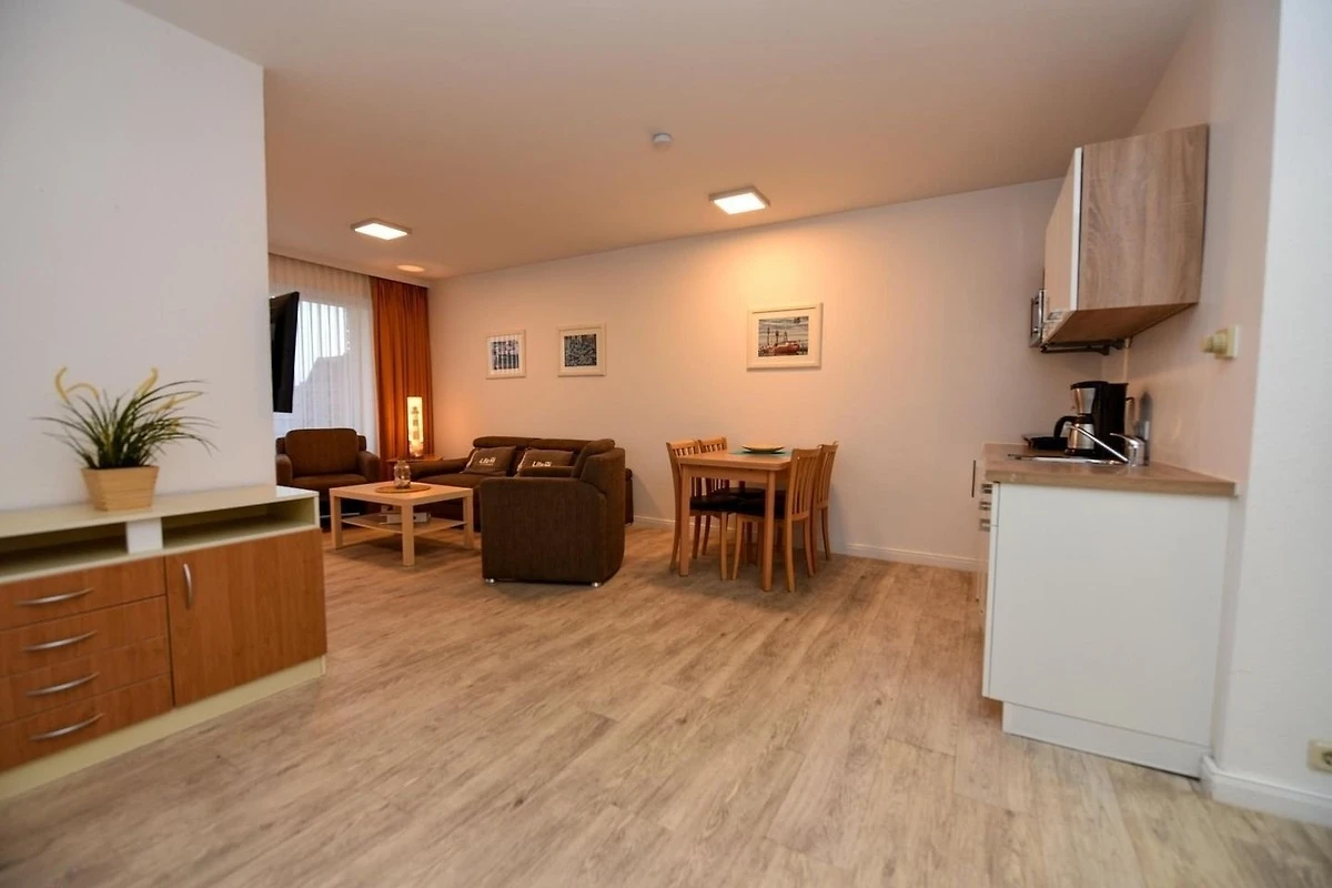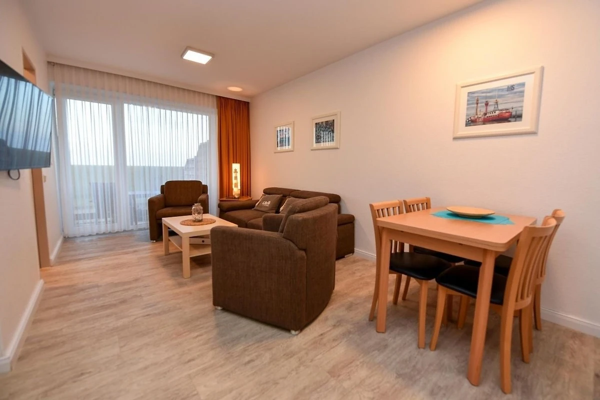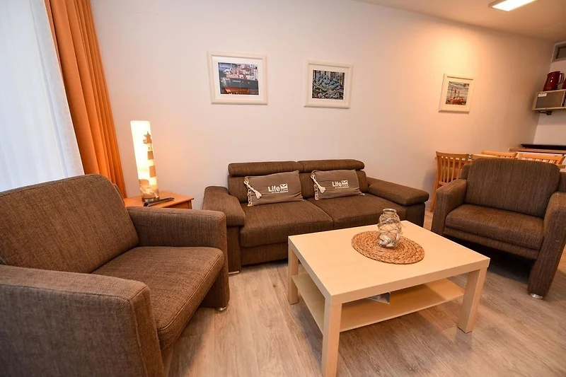 3-Zimmer Appartement im Haus "Nige Wark", bestehend aus einem Kinderzimmer mit Etagenbett und einem Schlafzimmer mit Doppelbett. Im Wohnzimmer befindet sich eine Couch, zwei Sesseln und ein Flat- TV sowie eine integrierte Küchenzeile die u.a. mit Spülmaschine, Mikrowelle und Kühlschrank mit Gefrierfach ausgestattet ist. Das Appartement verfügt über 2 Badezimmer die jeweils mit einer Dusche und WC ausgestattet sind. Grösse ca. 50qm. Die Wohnung liegt im Erdgeschoss und hat eine Terrasse zur Seeseite.