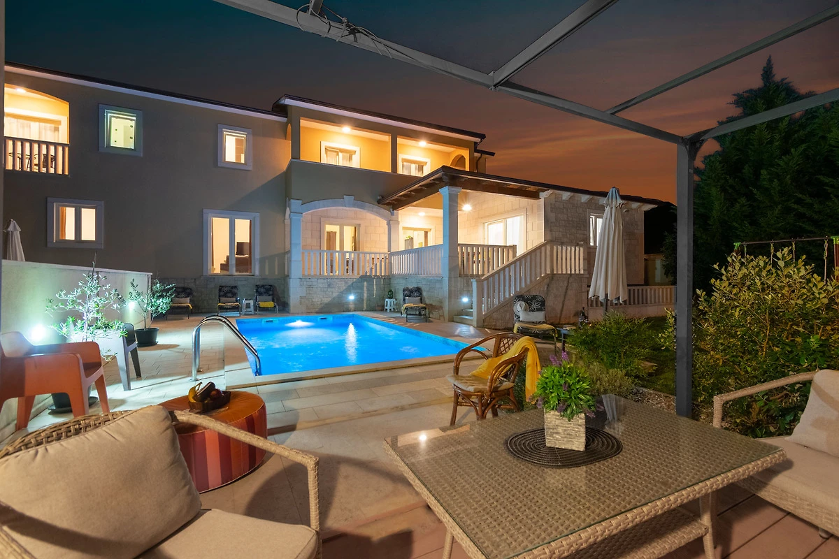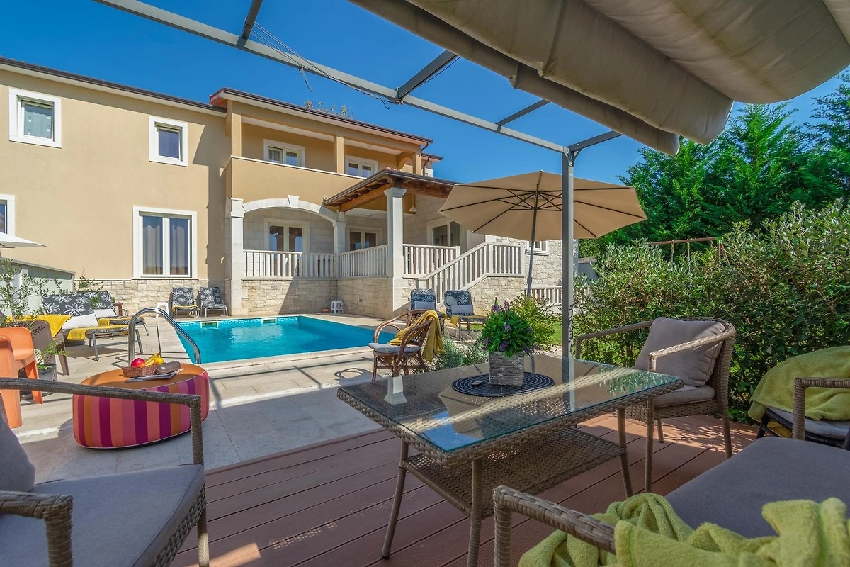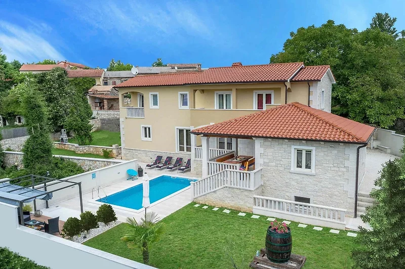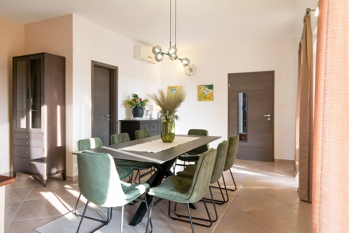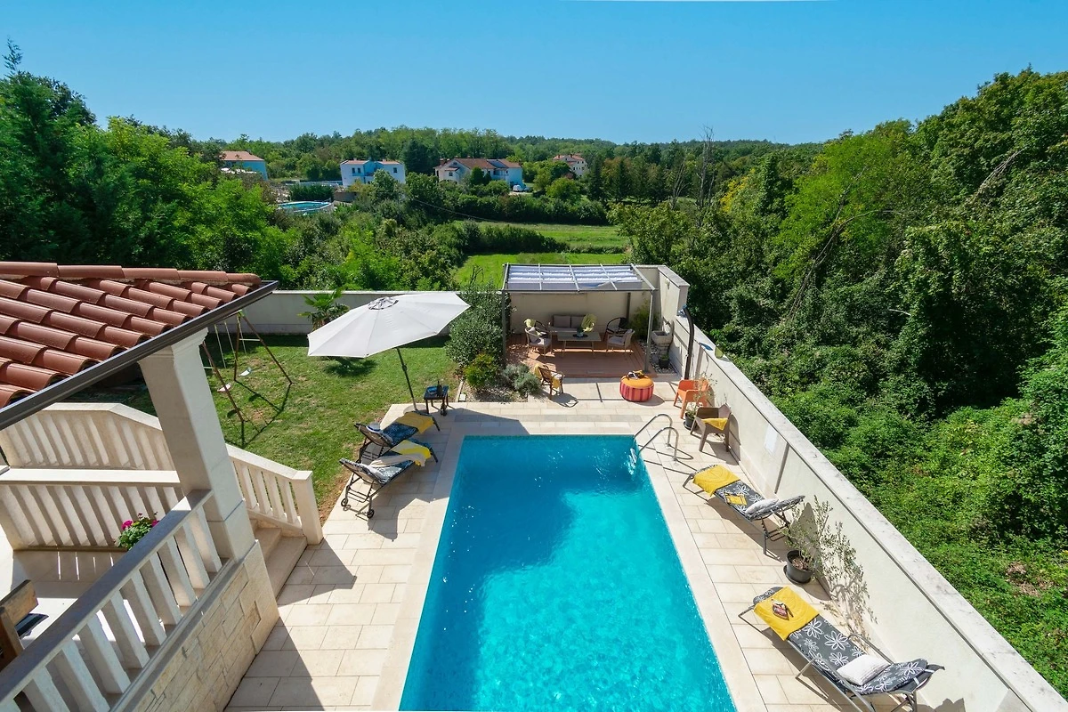 Willkommen in der Villa Coridigo, einem 4-Sterne-Ferienhaus in Zentralistrien, ideal für 8+2 Gäste, die Privatsphäre und Entspannung suchen. Auf erhöhtem Gelände gelegen, bietet es wunderschöne Ausblicke, einen 26 m² Pool und 700 m² eingezäunten Aussenbereich. Geniessen Sie vollklimatisierte Innenräume, eine komplett ausgestattete Küche, kostenloses Netflix & Prime Video sowie Essbereiche im Freien. Nur 20 Minuten von der Küste entfernt, mit einem Restaurant in Gehweite- Ihr perfekter Rückzugsort!