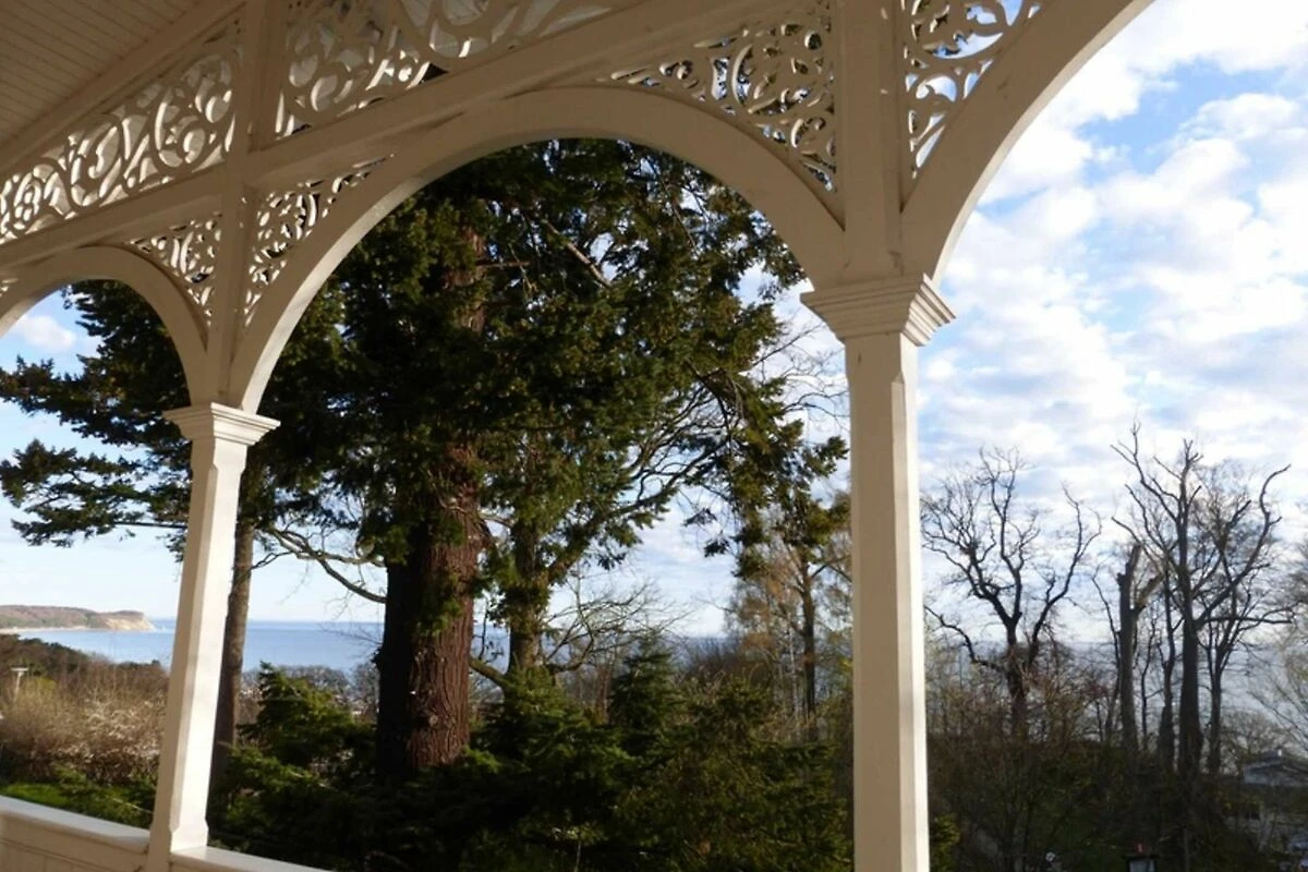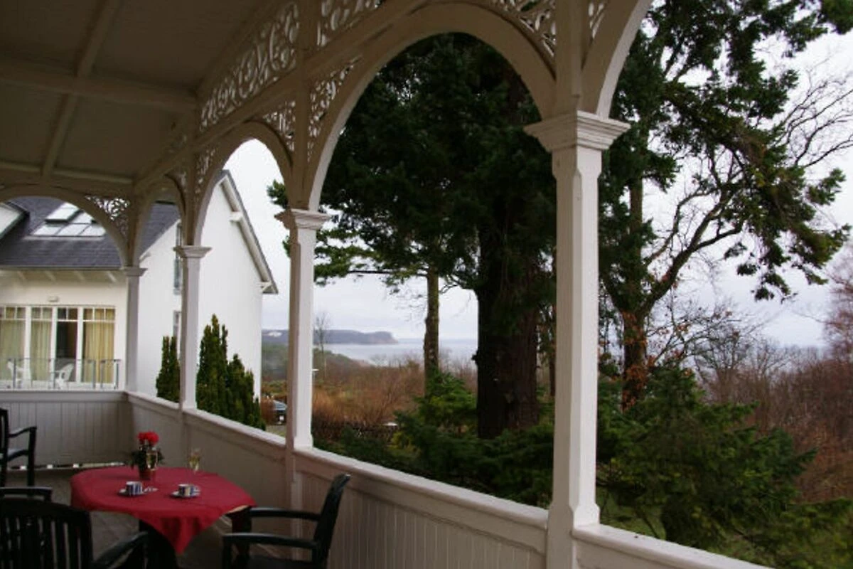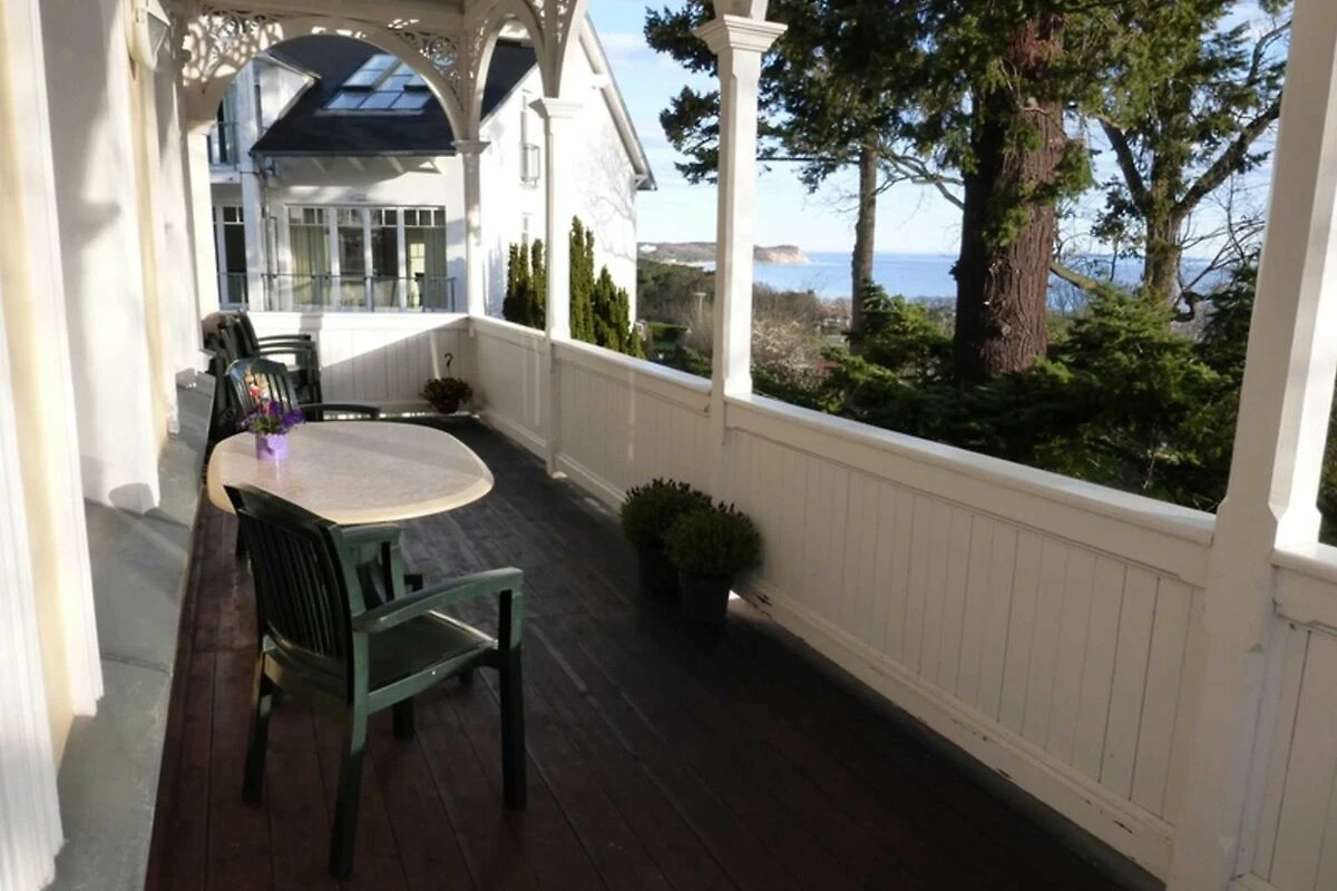 Vom riesigen Holzbalkon sowie der Wohnung aus, geniessen Sie einen unvergesslichen Blick auf die angrenzende See bis hin zur Steilküste mit ihren Kreidefelsen und dem Garten.