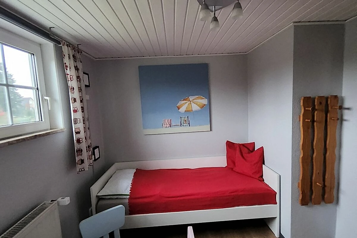 Komfort-Ferienwohnung mit einer Grundfläche von ca. 85 m2 bietet Platz für 5 Feriengäste. Die Wohnung befindet sich im Obergeschoss einer Doppelhaushälfte mit separatem Eingang, ausgebautem Dachgeschoss und Balkon.