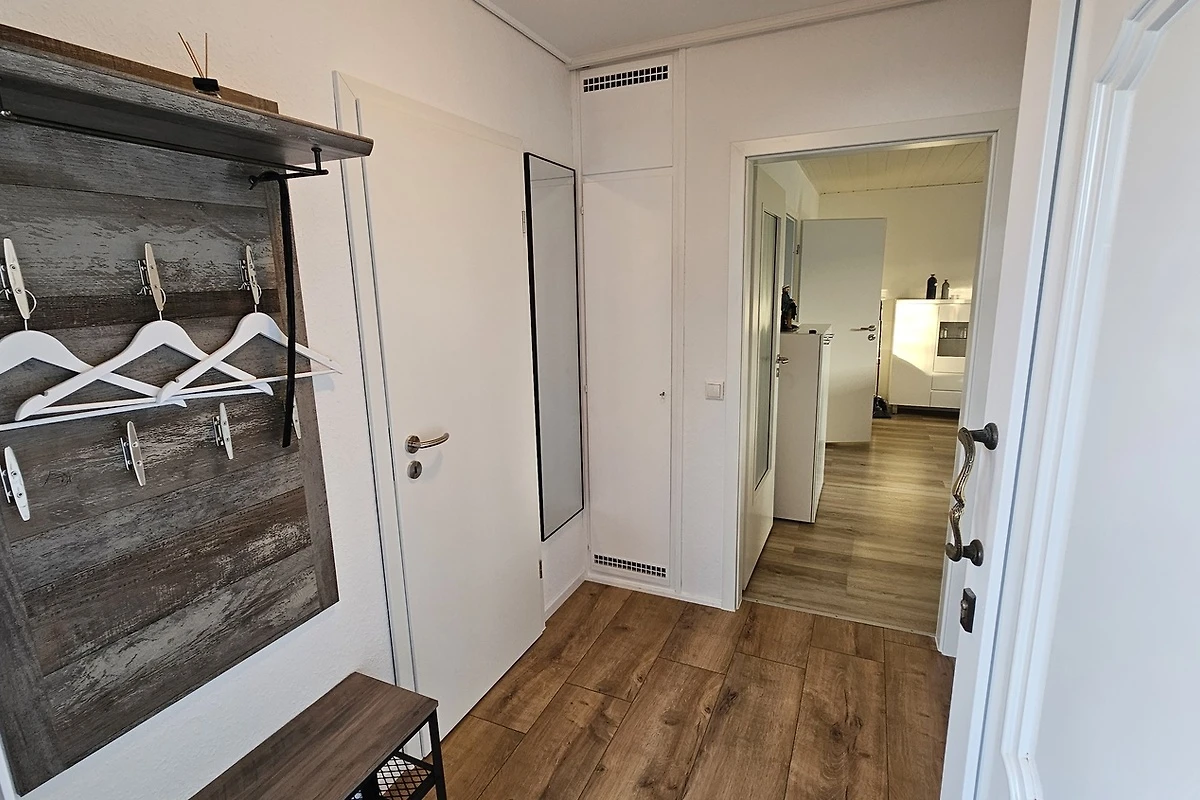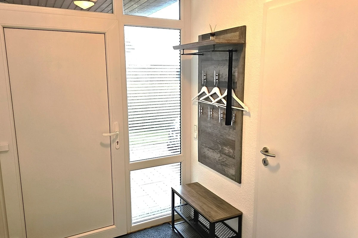Der Eingangsbereich bietet Ihnen die Möglichkeit Ihre Jacken an die Garderobe zu Hängen und die Schuhe im Schuhschrank unterzubringen.
