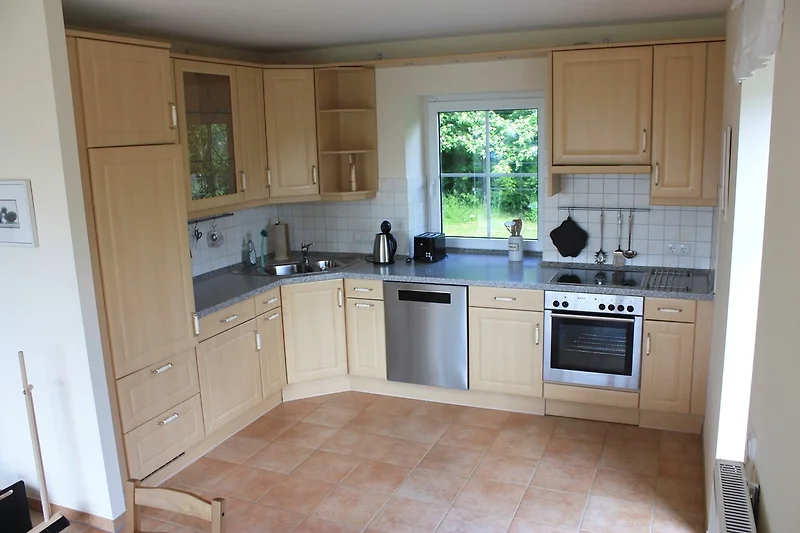 Für den abendlichen Schlummertrunk ist die schöne Terrasse ideal. Die gut ausgestattete Küche besitzt unter anderem einen Kühlschrank, einen Herd zum Kochen und sogar eine Spülmaschine.