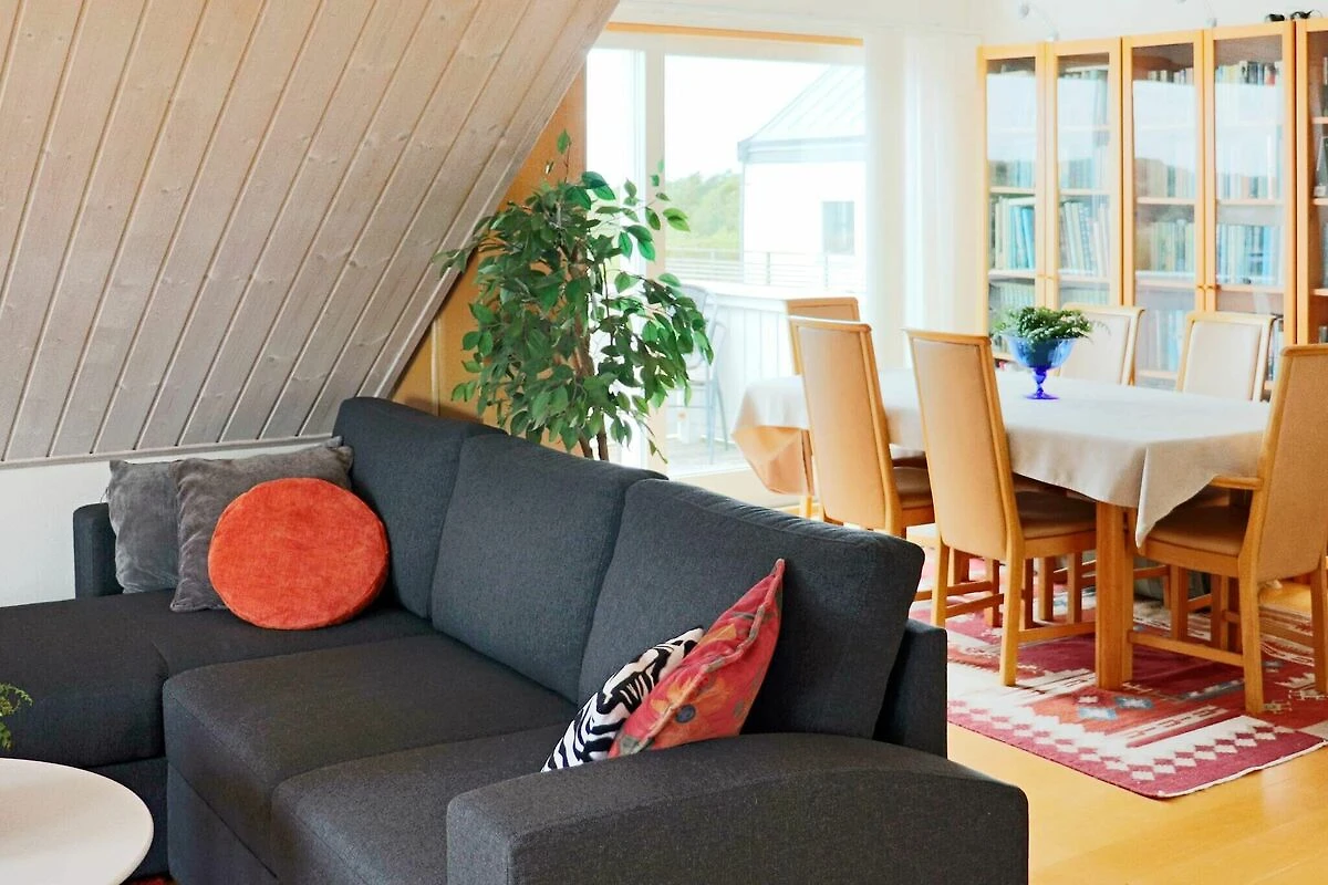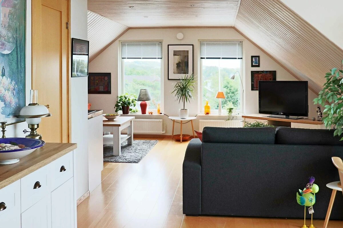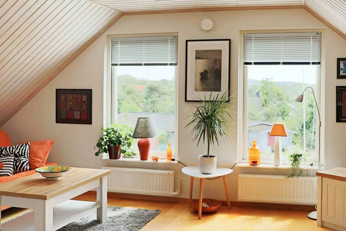 Separate Ferienwohnung im Dachgeschoss eines Privathauses mit fantastischer Lage am Meer in Frillesås. Die Aussicht oben vom Balkon ist herrlich! Sie erreichen das Meer nach nur einem kurzen Spaziergang entlang des Weges vom Haus aus. Die Badestrände in Frillesås bieten sowohl Felsen als auch Sandstrände. Eine Holztreppe an der Giebelseite des Hauses (siehe Foto) führt Sie hinauf zum Eingang. Die Wohnung verfügt über ein großes Wohnzimmer mit Küchenzeile und Essbereich mit Zugang zum Balkon, der Panoramaausblick bis zum Meer und zu den kleinen Inseln in der Bucht bietet. Ein Schlafzimmer mit zwei Einzelbetten, das andere mit einem 120 cm breitem Bett. Im Wohnzimmer steht außerdem ein Schlafsofa für zwei Personen bereit. In der Wohnung auch schönes, helles Badezimmer mit Dusche. Freies WLAN vorhanden. Neben dem Haus steht zudem ein separater Annex (nicht winterfest) mit einem Etagenbett mit zwei Kojen zur Verfügung. Sie haben auch Zugang zu Ihrer eigenen separaten Terrassenfläche neben dem Annex. Es gibt dort bequeme Gartenmöbel und einen Grill. Neben der Treppe steht ein Gartentisch, über den Sie verfügen können. Die Ferienwohnung wird nicht an Jugendgruppen vermietet! Ein Spaziergang führt Sie zu wunderschönen Sandstränden und Klippen, wo Sie sonnenbaden und schwimmen können. Sie können auch einen Spaziergang mit einer Angelrute unternehmen, um während der Saison im nahe gelegenen Löftaån eine Meerforelle zu fangen. Beachten Sie bitte, dass für den Fluss Angelscheine und lokale Regeln gelten. Der Golfer besucht den 18-Loch-Golfplatz von Sjögärde GK, der etwa 8 km entfernt ist. Das Zentrum von Frillesås ist eine charmante kleine Gemeinde mit unter anderem einem Lebensmittelgeschäft und einigen Restaurants. Sie können 600 Meter zu Fuß gehen, um dorthin zu gelangen. Sowohl im Süden als auch im Norden können Sie auf Wunsch weitere fantastische Sandstrände erreichen. Ein Ausflug nach Kungsbacka ist eine Reise von 25 km, Varberg ist 27 km in die andere Richtung und die Großstadt Göteborg ist nur 50 km entfernt.