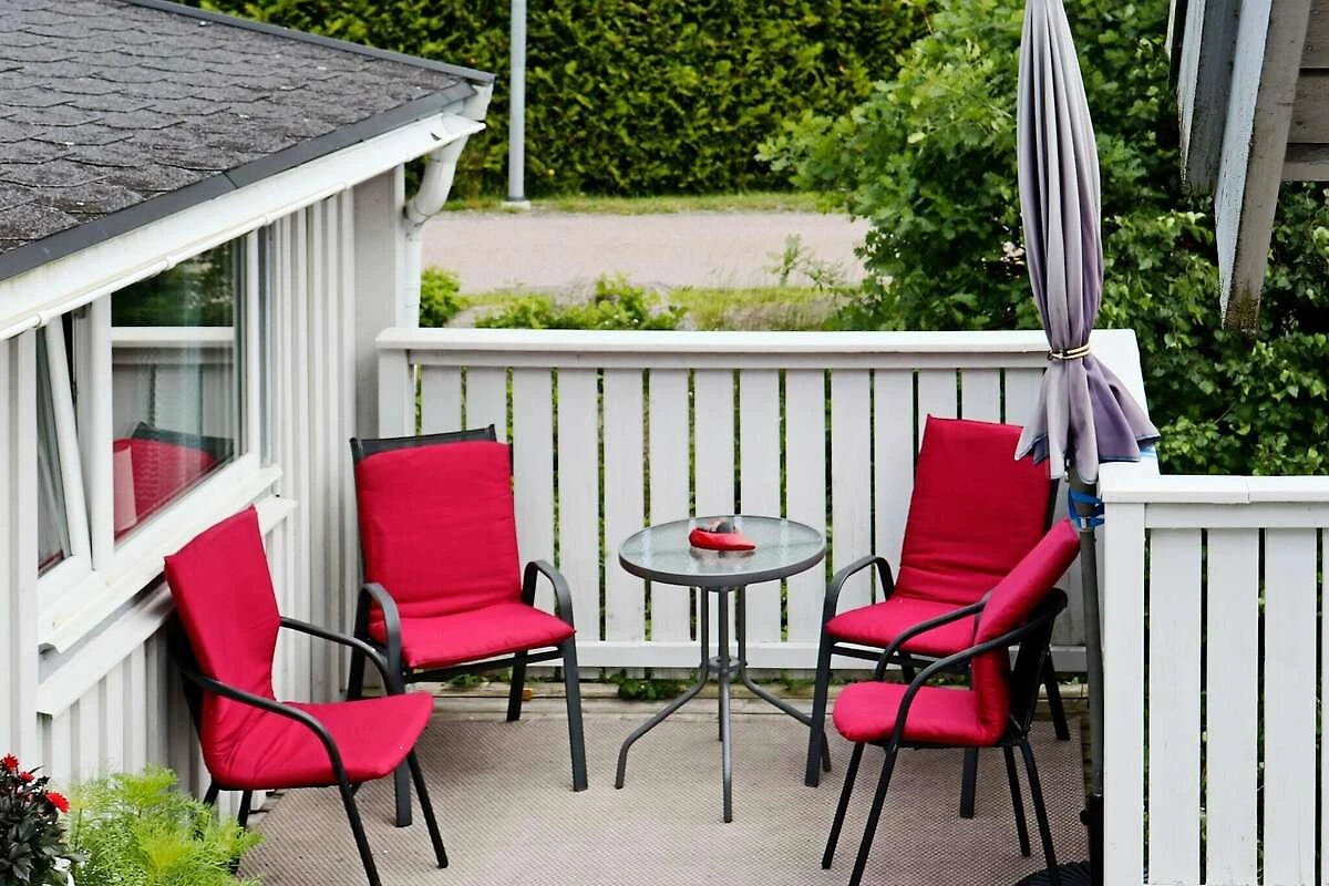 , Vorratsraum(Herd(2 Kochplatten), Kaffeemaschine, Mikrowelle, Kühlschrank(+ Gefrierfach)), Wohn-/Schlafzimmer(Doppelklappbett , TV(schwedische Fernsehsender), Chromecast), Schlafzimmer(2x Einzelbett), Schlafzimmer(Einzelbett), Badezimmer(Waschbecken, Dusche, Toilette), Heizung(elektrisch), Terrasse(Gartenmöbel, Grill), Parkplatz