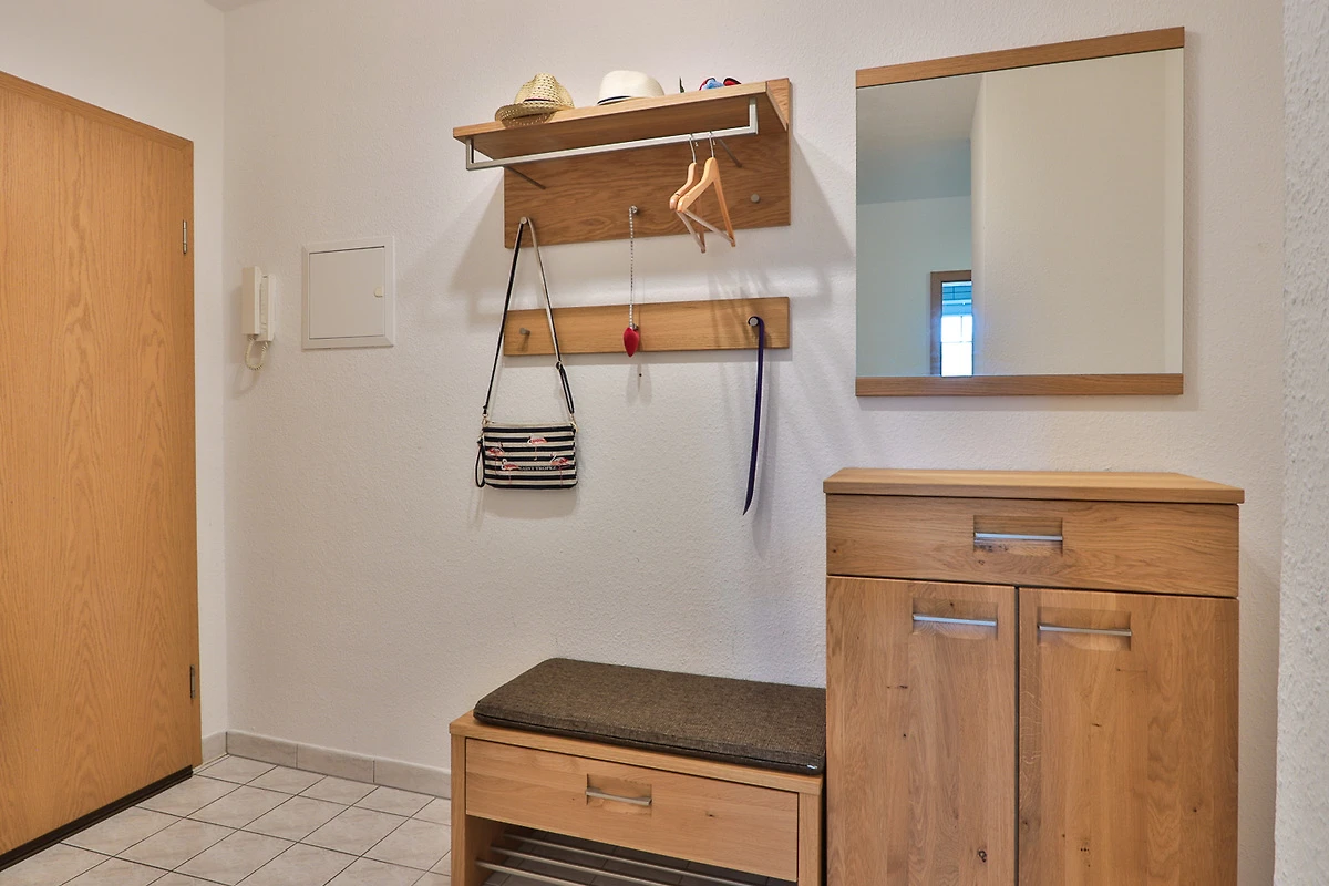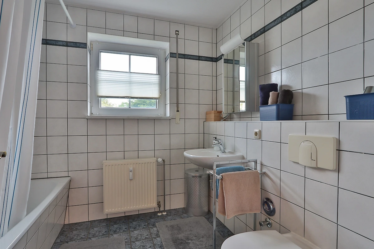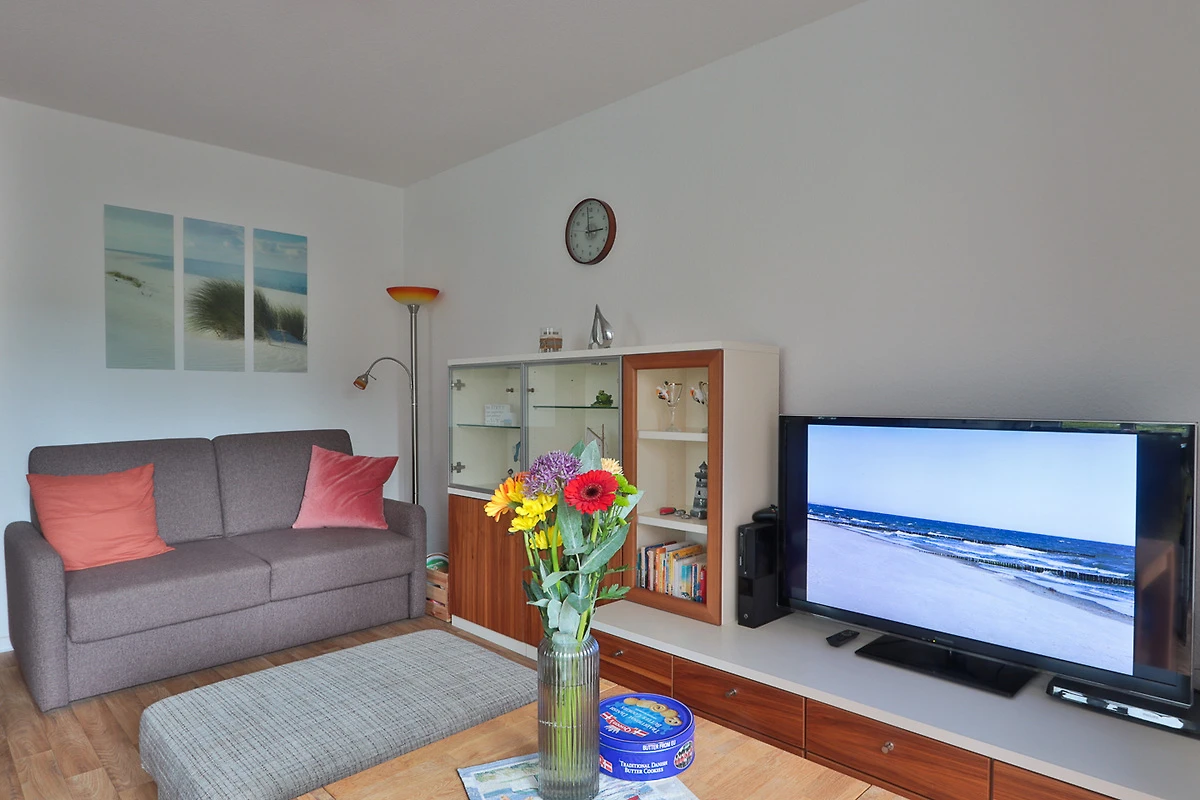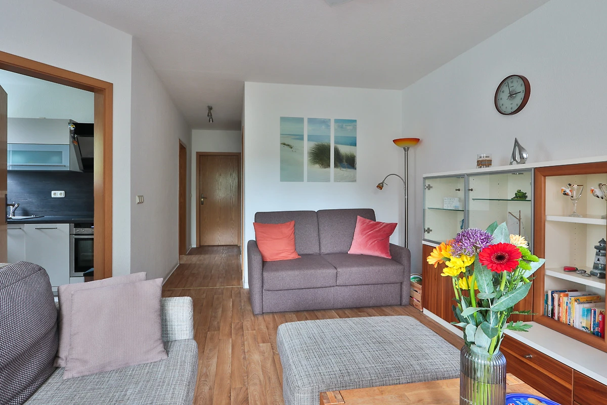 Diese komfortabel und gemütlich eingerichtete Wohnung Uferschwalbe lädt zum Verweilen ein. Das Wohnzimmer ist ausgestattet mit einer Couch + einer sehr guten Doppelbettcouch, TV und Radio sowie einem Esstisch. Vom Balkon schauen Sie auf schöne alte Bäume. Das Schlafzimmer hat ein Doppelbett, Nachttische, Kommode und Kleiderschrank. Die separate Küche verfügt über alle modernen Geräte. Das Bad mit Fenster ist mit einer Badewanne und Waschmaschine ausgestattet. Alle Fenster der Wohnung haben Rollläden sowie Fliegengitter. Den Gästen stehen zwei 28-er Fahhräder kostenfrei zur Verfügung.