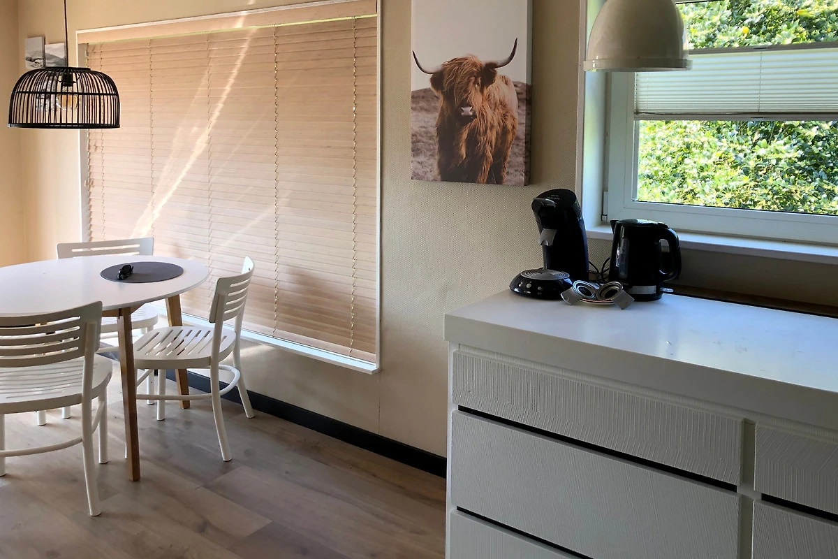 Es gibt zwei Schlafzimmer: eines mit einem Doppelbett und geräumigen Waschbecken, das andere mit einem Einzelbett. Das Badezimmer ist mit Waschbecken, Dusche und WC ausgestattet. Zudem steht Ihnen eine Waschmaschine zur Verfügung. Ihr Auto können Sie in der Nähe des Ferienhauses parken, und es gibt eine Ladestation im Ferienpark. Bringen Sie Ihre eigenen Fahrräder mit? Dann können Sie diese im Schuppen neben dem Ferienhaus abstellen.