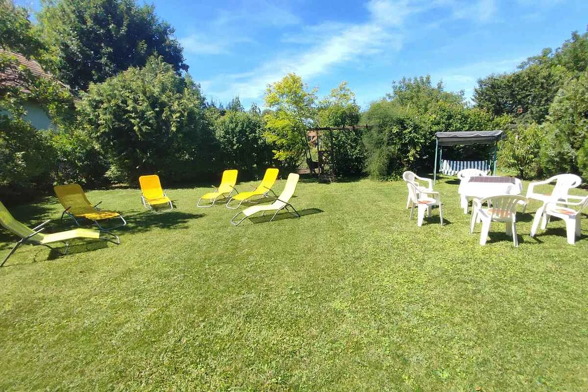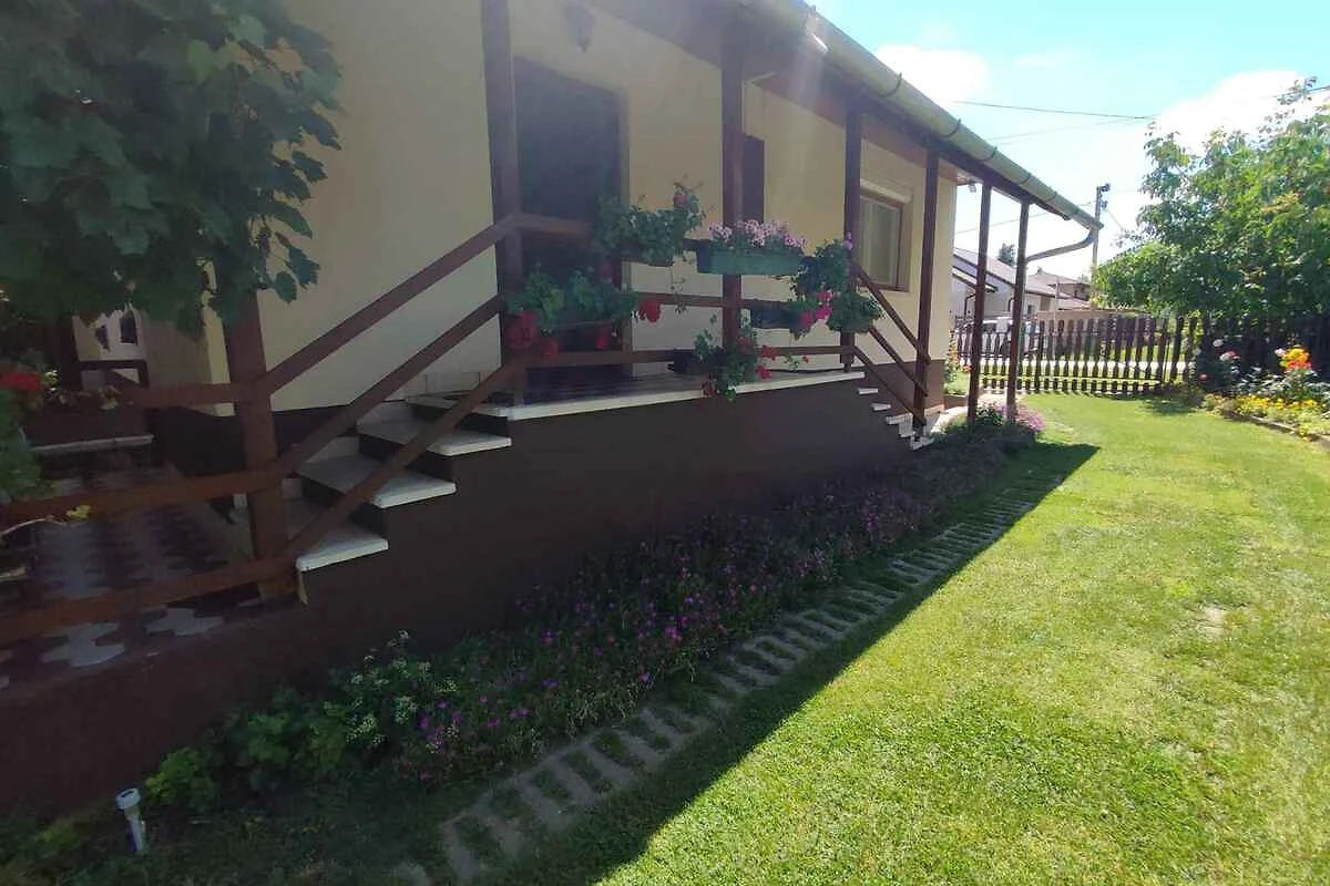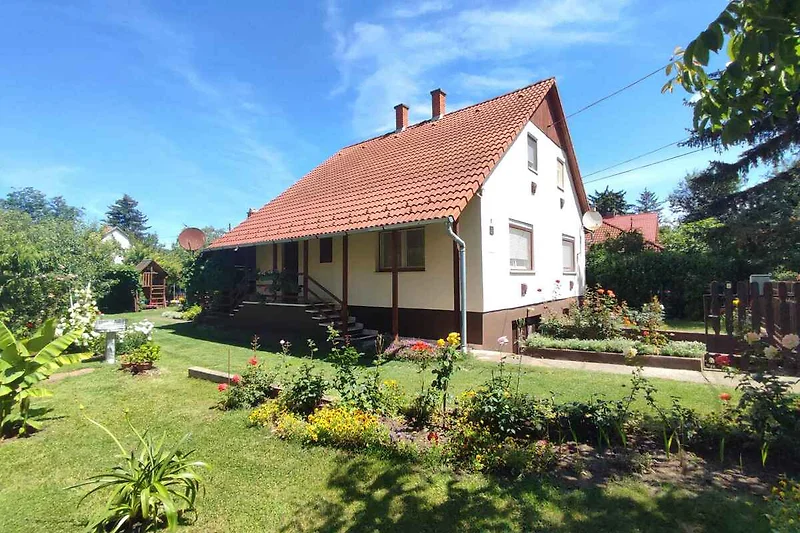 Agárd. Das Ferienhaus befindet sich auf einem 900 qm grossen, geschlossenen Gartengrundstück mit Wiese, Blumen, Sträuchern und Bäumen, von einem Zaun begrenzt. Der Vermieter wohnt ständig in einem separaten Gebäude auf dem Grundstück. Die Zufahrt erfolgt über eine Nebenstrasse (asphaltiert). Parkplatz (für 2 Pkws) auf dem Grundstück.