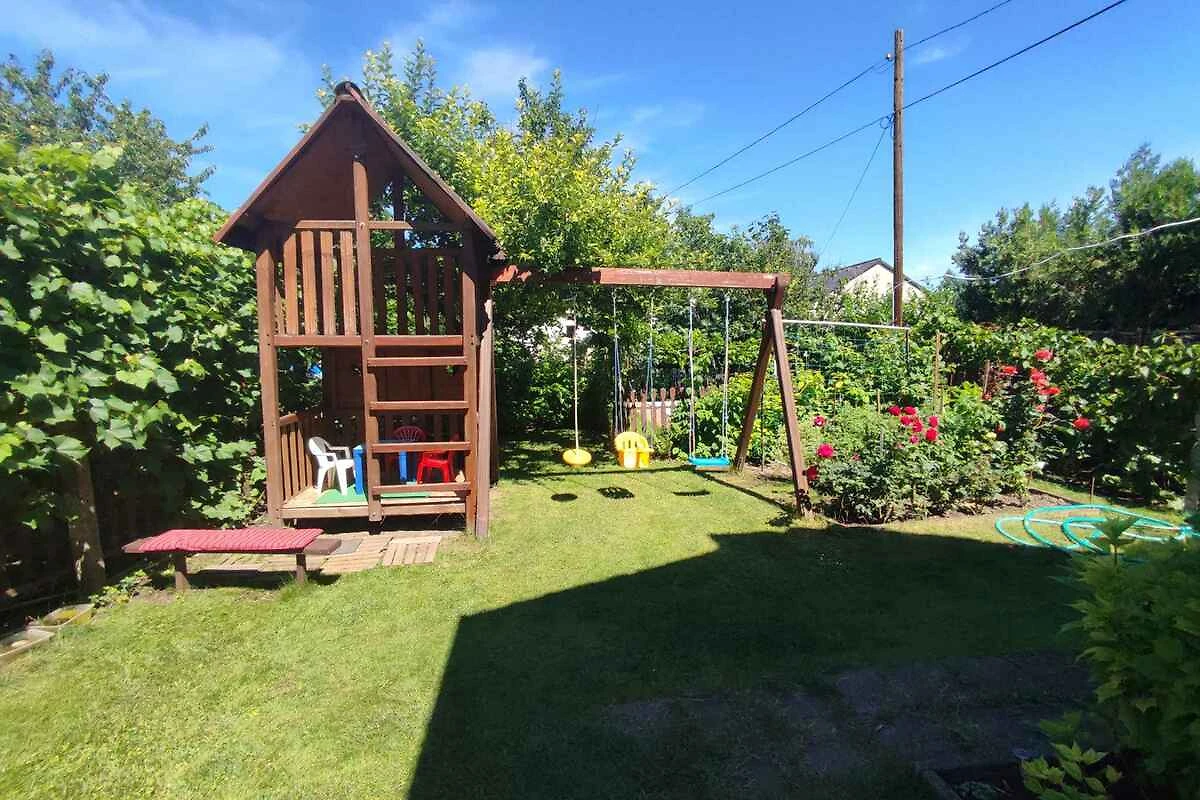 Das einzeln stehende Ferienhaus ist rustikal eingerichtet. Das Grundstück befindet sich in einem Wohngebiet, im Ortszentrum. Auch wegen der ruhigen und sonnigen Lage ist das Domizil beliebt. Zur alleinigen Nutzung stehen zur Verfügung: Liegewiese, Sonnenschirm, Sonnenliege, Kinderspielplatz, Schaukel, Sandkasten, Grillmöglichkeit, Terrasse, Gartenmöbel, Hollywood-Schaukel, Lagerfeuerplatz und Hof.