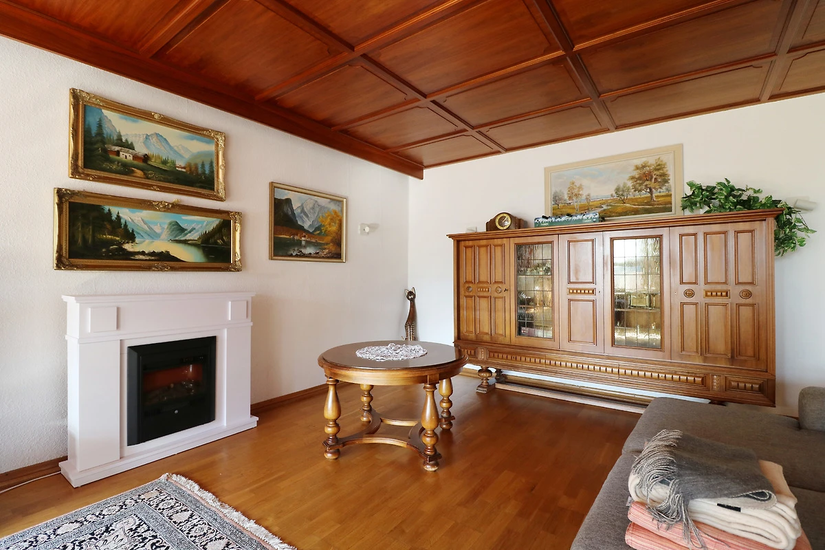 The holiday flat is 150m² in size, has 4 bedrooms, a bed-sitting room, a separate kitchen, 2 bathrooms and can accommodate up to 8 people. From the large terrace there is a wonderful view of the Swiss Alps in good weather.