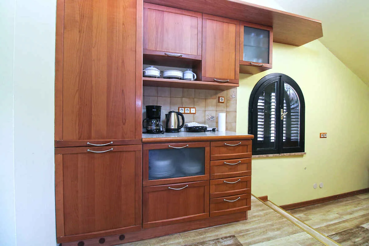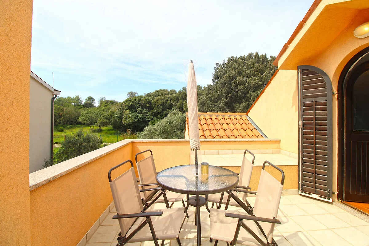Pješćana Uvala. Die Ferienwohnung befindet sich in einer Ferienanlage, auf einem 135 qm grossen, geschlossenen Gartengrundstück mit Sträuchern und Bäumen, von einem Zaun begrenzt. Die Zufahrt erfolgt über eine Nebenstrasse (asphaltiert). Parkplatz auf dem Grundstück.