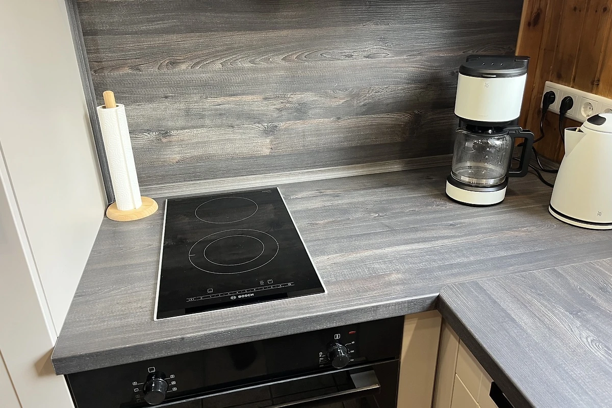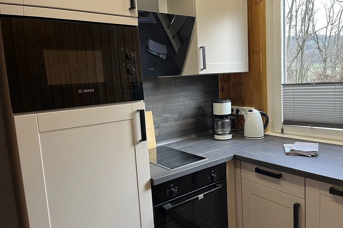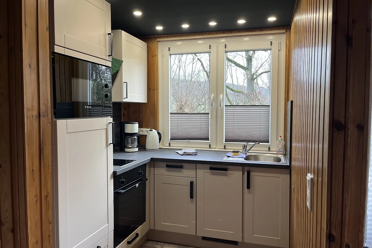 Die Küchenzeile ist mit einer Mikrowelle, Heißluftfriteuse sehr praktisch (ohne öl und fett benutzen), einem Wasserkocher und einer Kaffeemaschine ausgestattet. Ein Fernseher und WLAN sind ebenfalls vorhanden. Langzeitmieten sind möglich. (Nach Absprache)