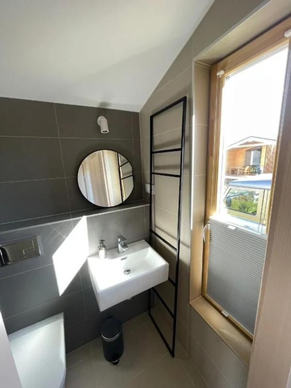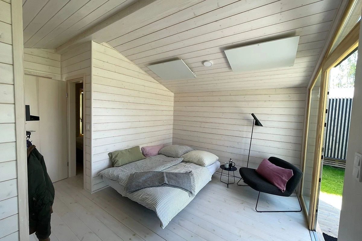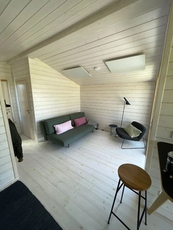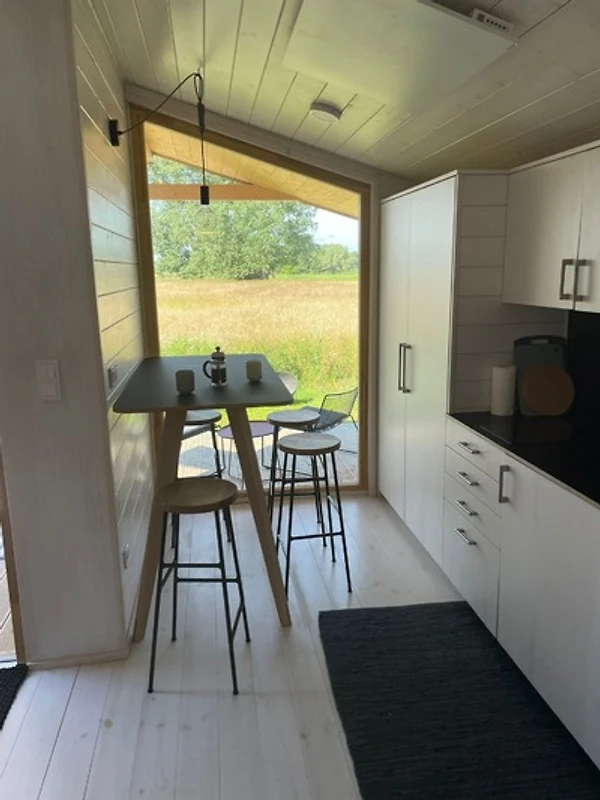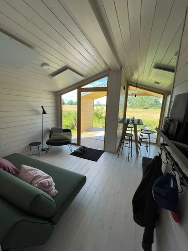 Dieses Tiny House im minimalistischen Design ist hochwertig eingerichtet und lässt keinen Komfort vermissen. Es besteht aus zwei Räumen mit separatem Tageslicht-Bad.
