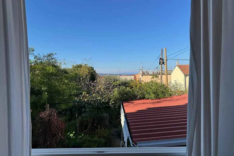 Selce. Die Ferienwohnung befindet sich auf einem geschlossenen Gartengrundstück mit Wiese und Blumen, von einem Zaun und einer Hecke begrenzt. Der Vermieter wohnt nur zeitweise im Haus, nutzt jedoch einen separaten Eingang. Die Zufahrt erfolgt über eine Nebenstrasse (asphaltiert). Parkplatz auf dem Grundstück.