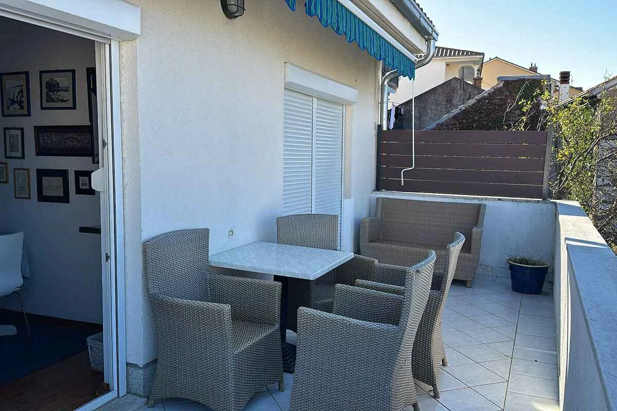 Selce. Die Ferienwohnung befindet sich auf einem geschlossenen Gartengrundstück mit Blumen und Bäumen, von einem Zaun und einer Hecke begrenzt. Der Vermieter wohnt nur zeitweise im Haus, nutzt jedoch einen separaten Eingang. Die Zufahrt erfolgt über eine Nebenstrasse (asphaltiert). Parkplatz auf der Strasse vor dem Haus.