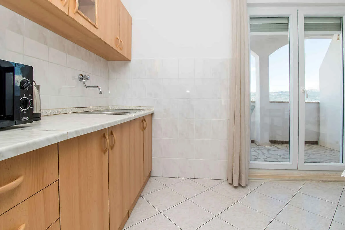 Einkauf 300 m, Restaurant 500 m, Ortszentrum 2,5 km. Die nächste Haltestelle für den öffentlichen Nahverkehr ist 300 m entfernt. Diskothek, Arzt, Apotheke, Bank jeweils 2,5 km in Arbanija. Flughafen in Split 7 km. Im Sommer: Bademöglichkeit 80 m in Arbanija (Strand 120 m in Arbanija mit Kies und Badeplateaus).