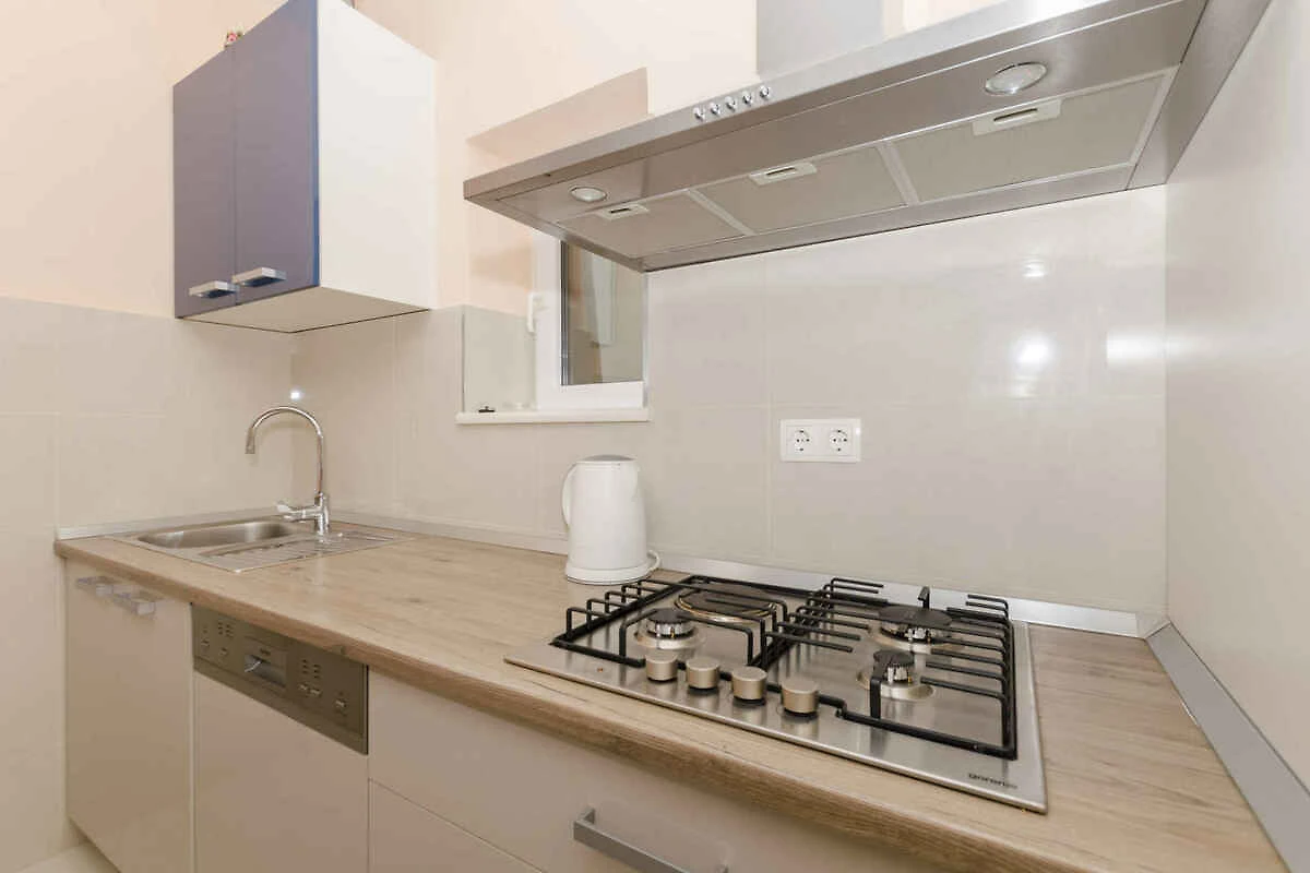 . Wohnzimmer mit Sitzecke, TV und Essecke (6 Plätze). 2 Schlafzimmer jeweils (15 qm) mit 1 Doppelbett und 1 Einzelbett. Kochecke im Wohnzimmer mit Gasherd (3 Flammen), Elektroherd (Cerankochfeld, 1 Platte), Backofen, Dunstabzugshaube, Geschirrspüler, Kühlschrank (Eisfach), Mikrowelle und elektrischem Wasserkocher. Bad mit Dusche, 1 Waschbecken und WC. Bad mit Dusche, 1 Waschbecken, WC, Föhn und Hajszárító kérésre elérhető. Schlafzimmer (11 qm) mit 1 Doppelbett.