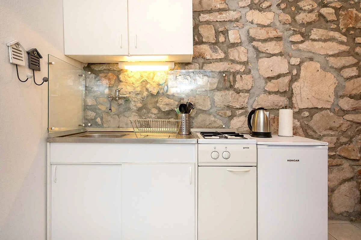 Stari Grad. Das Studio befindet sich auf einem offenen Grundstück. Der Vermieter wohnt im Haus, nutzt jedoch einen separaten Eingang. Verbringen Sie Ihren Urlaub an einem Fels und Kiesstrand, grössere Steine mit betonierten Liegeflächen der 800 m entfernt ist. Die Zufahrt erfolgt über eine Nebenstrasse. Erreichbarkeit mit dem Auto ist erschwert. Parkplatz ist 150 m - 300 m vom Haus entfernt.