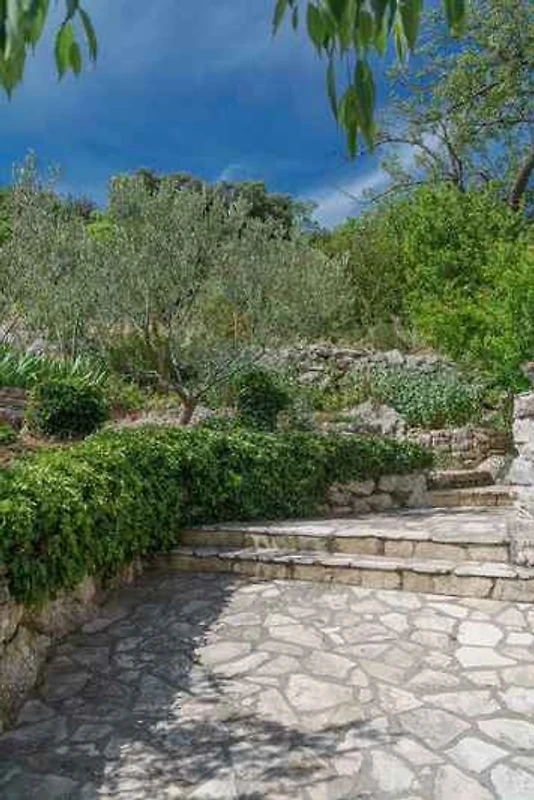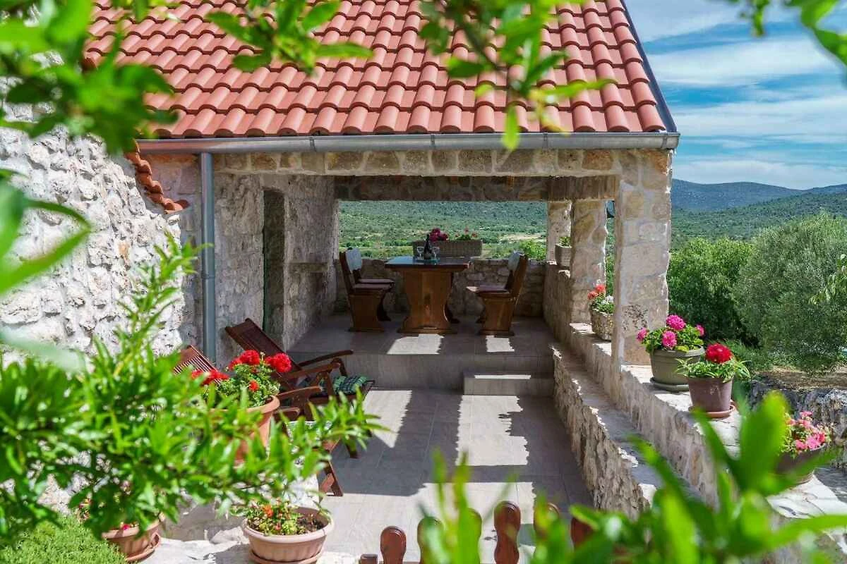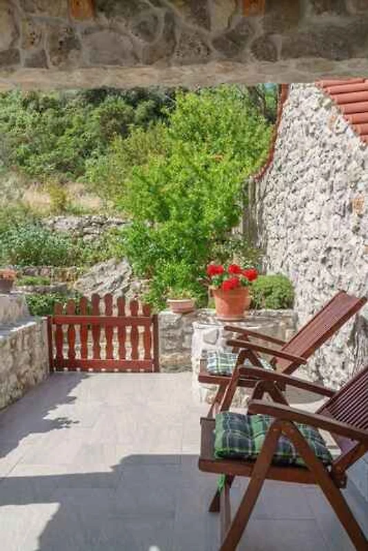 Tisno. Das Ferienhaus befindet sich auf einem 400 qm grossen, geschlossenen Gartengrundstück mit Blumen und Bäumen, von einem Zaun begrenzt. Die Zufahrt erfolgt über eine Nebenstrasse (asphaltiert). Parkplatz auf dem Grundstück.