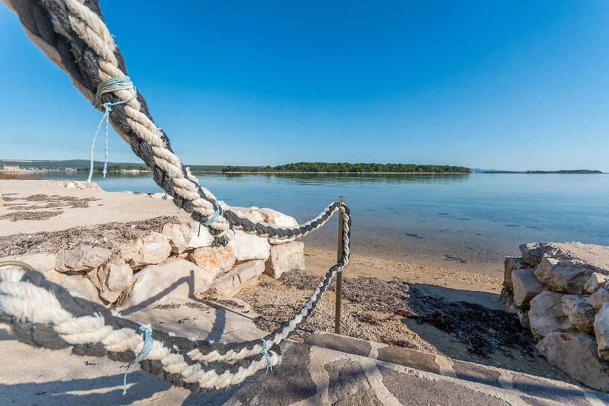 Pašman. Das Ferienhaus befindet sich auf einem 200 qm grossen, geschlossenen Gartengrundstück mit Blumen und Bäumen, von einem Zaun begrenzt. Die Zufahrt erfolgt über eine Nebenstrasse (asphaltiert). Parkplatz auf dem Grundstück.