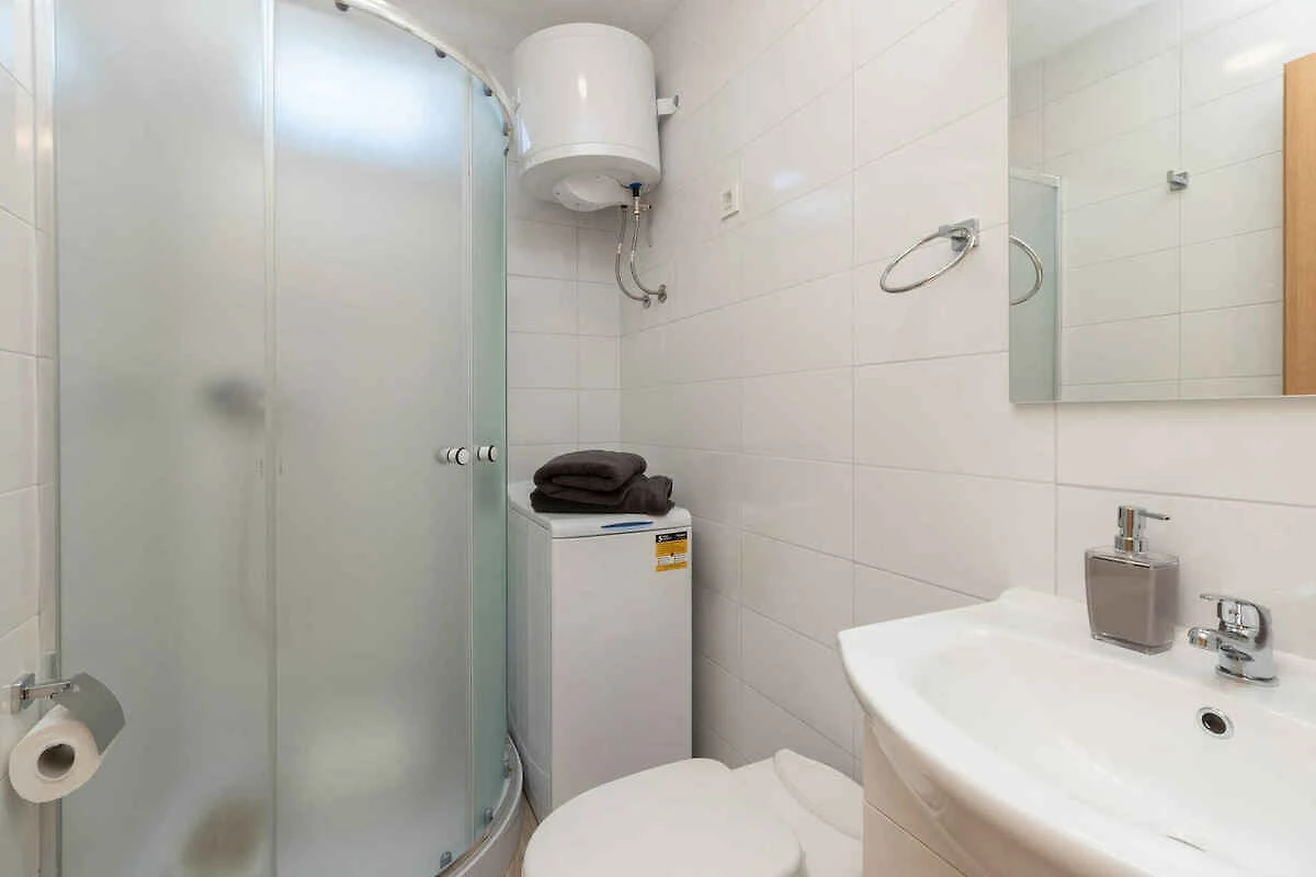 Einkauf 1000 m, Restaurant 1000 m, Ortszentrum 1000 m. Die nächste Haltestelle für den öffentlichen Nahverkehr ist 1000 m entfernt. Flughafen in Pula 40 km. Im Sommer: Adriatisches Meer 65 m in Pašman (Strand 65 m in Pašman).