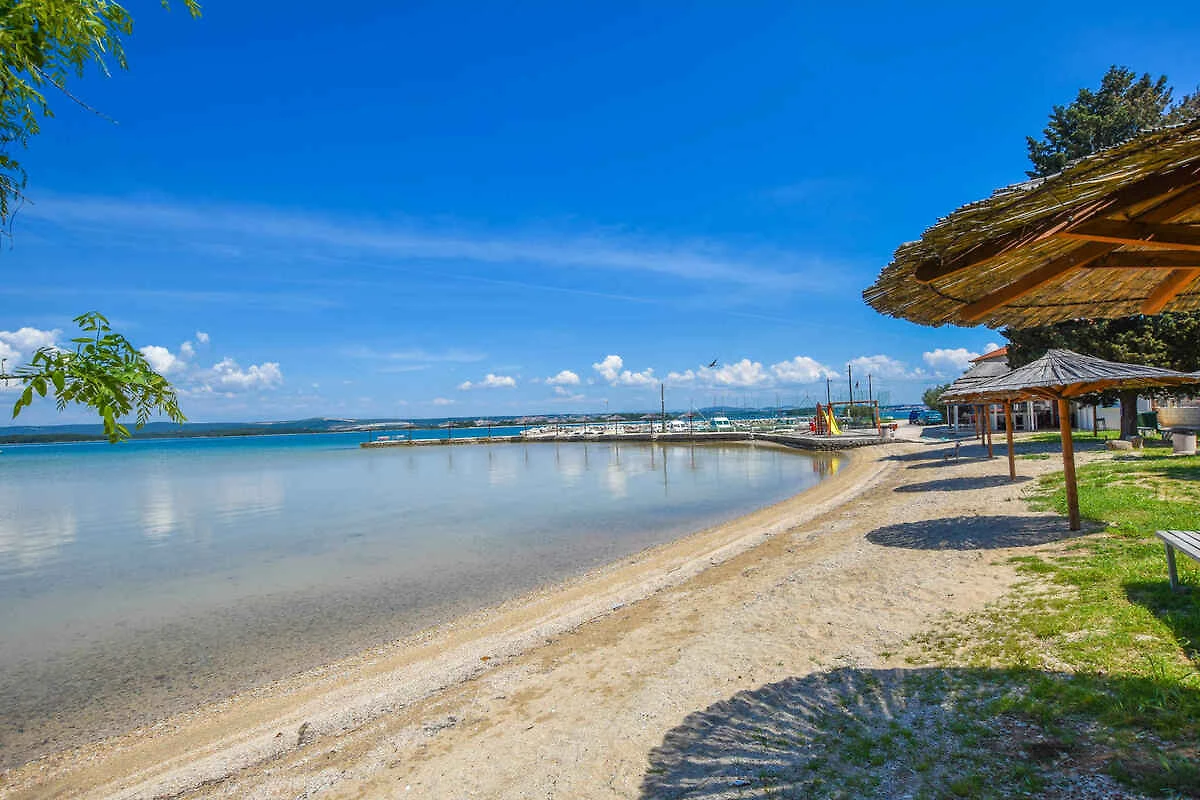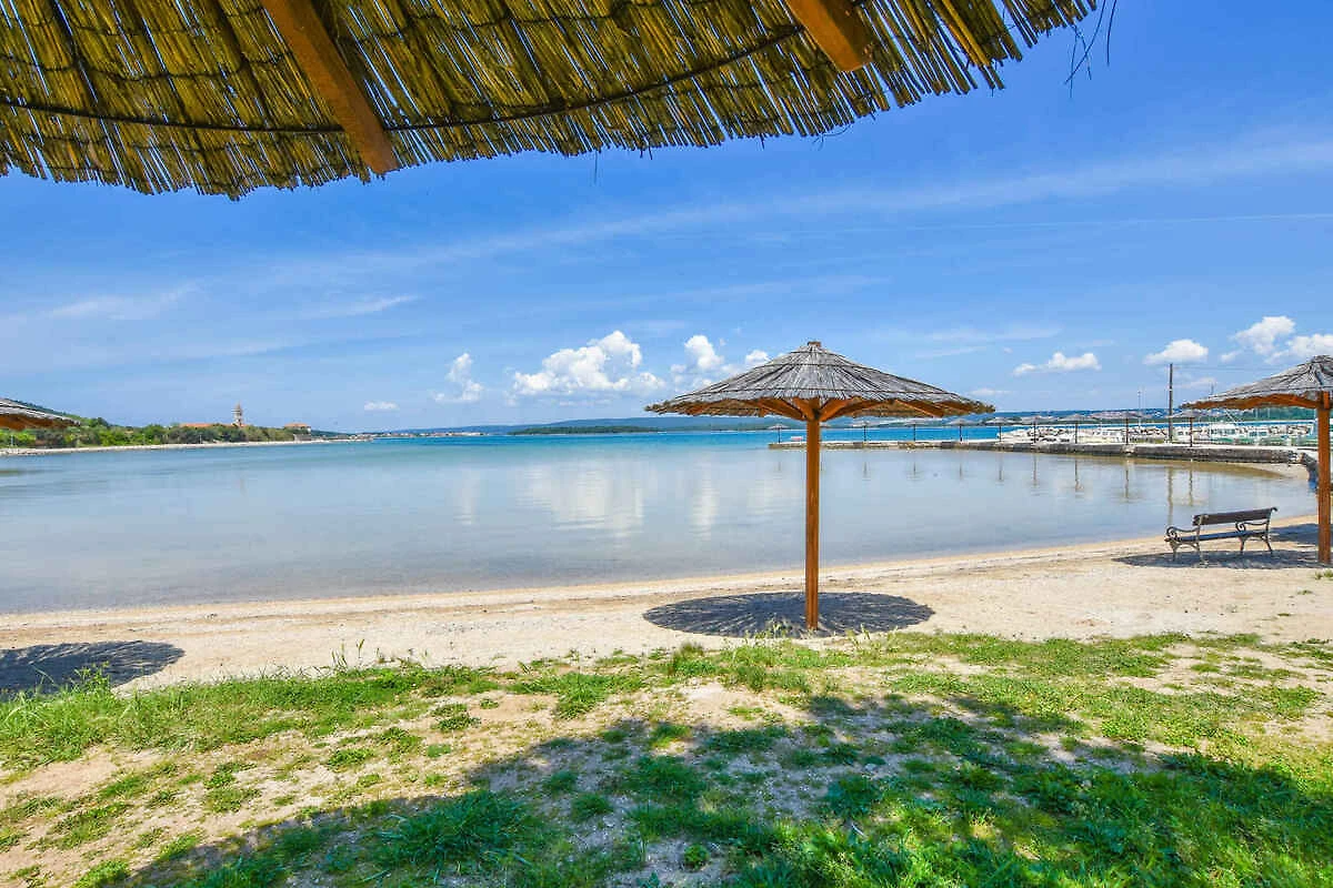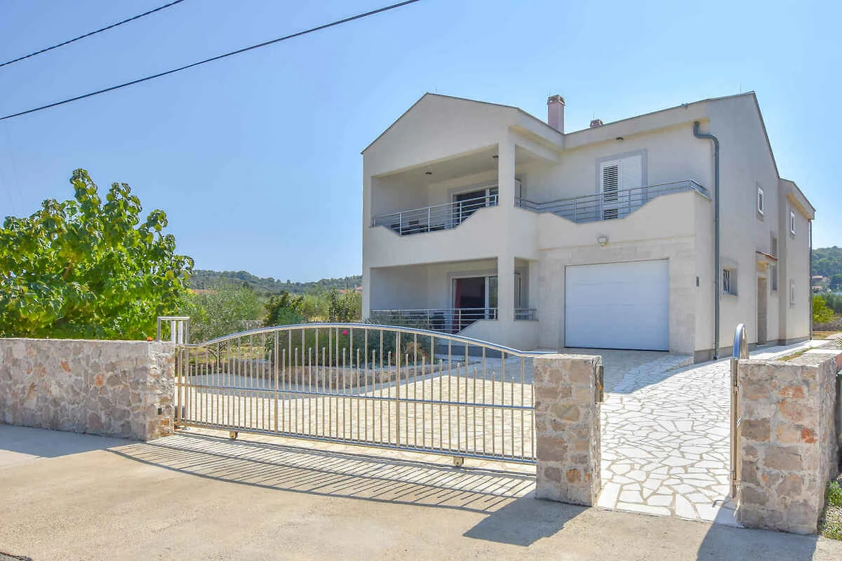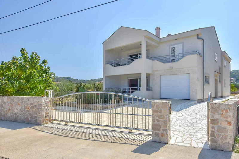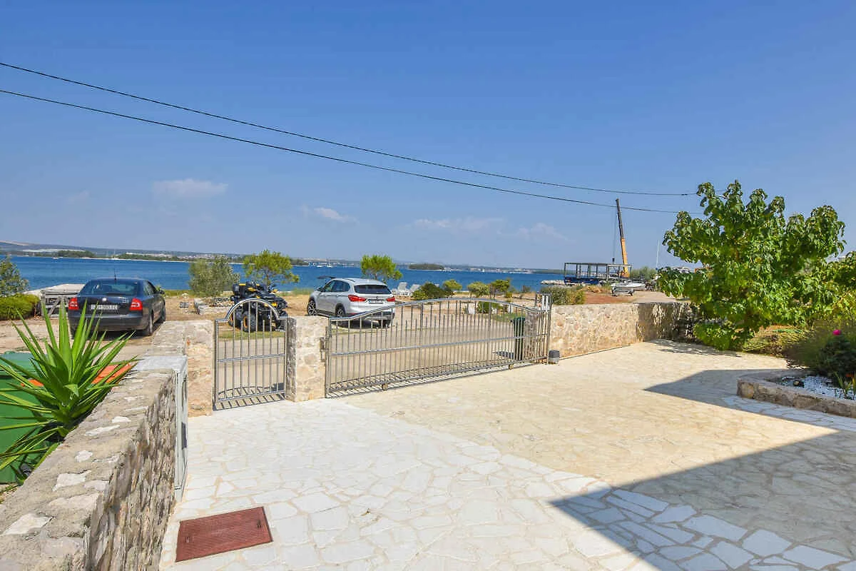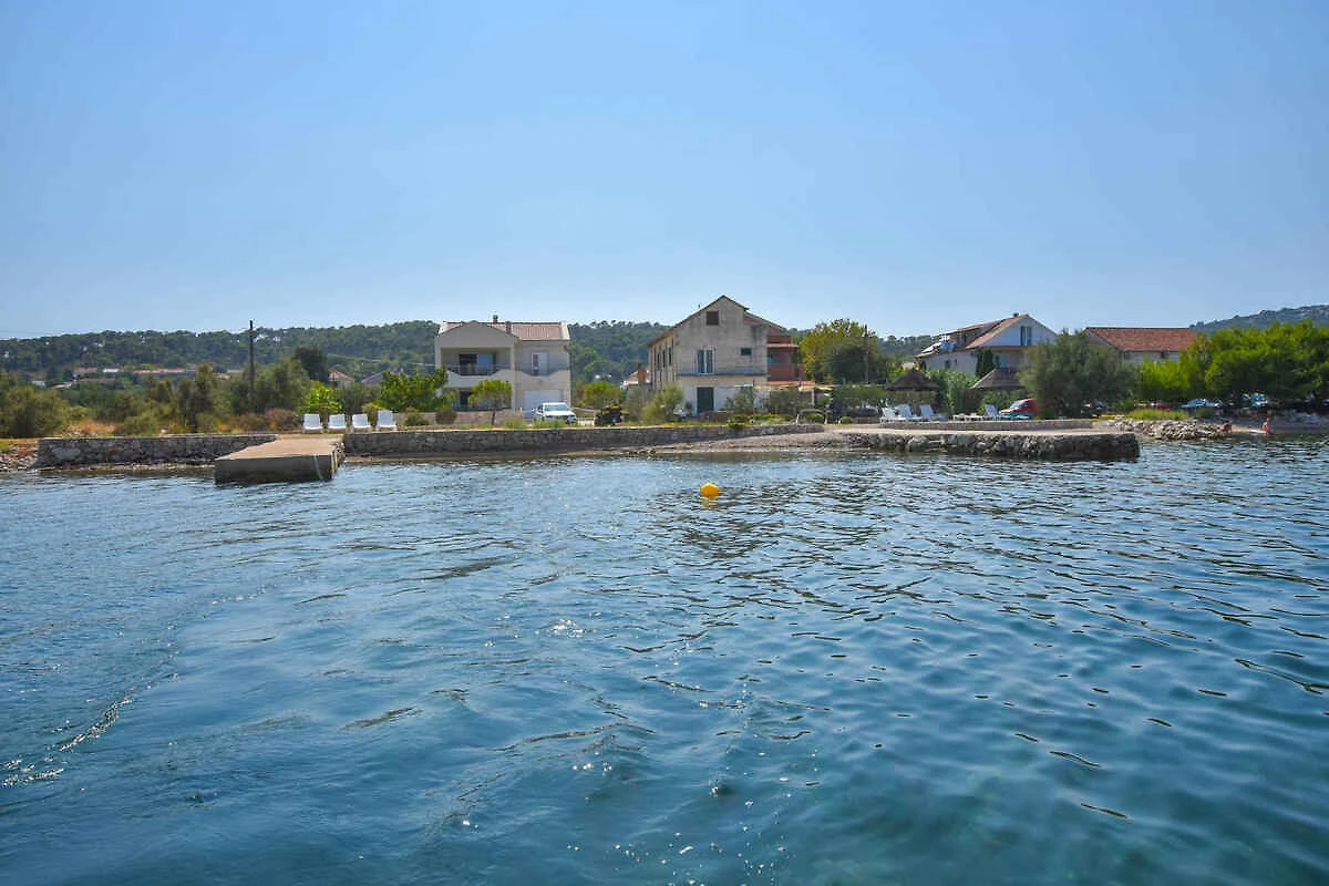 Kraj/Insel Pašman. Die Ferienwohnung befindet sich auf einem geschlossenen Gartengrundstück mit Blumen und Bäumen, von einem Zaun begrenzt. Die Zufahrt erfolgt über eine Nebenstrasse (asphaltiert). Parkplatz auf dem Grundstück.