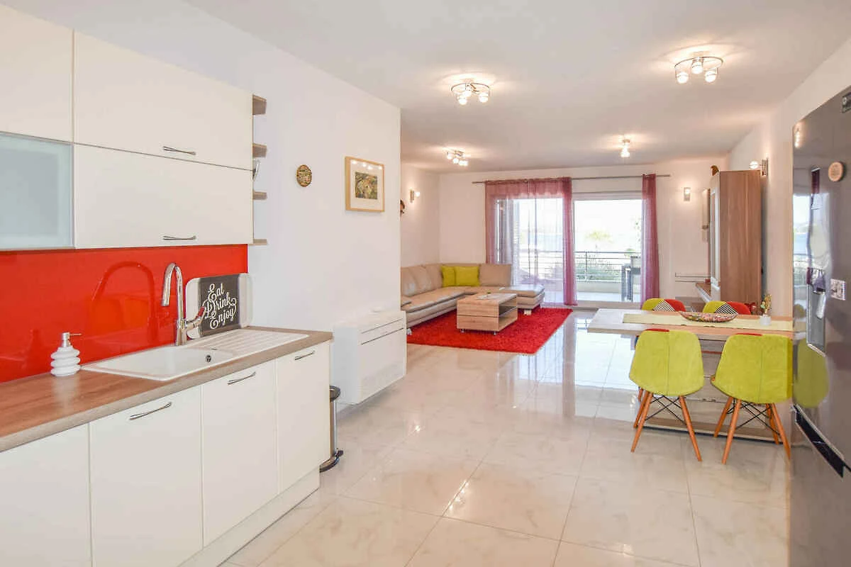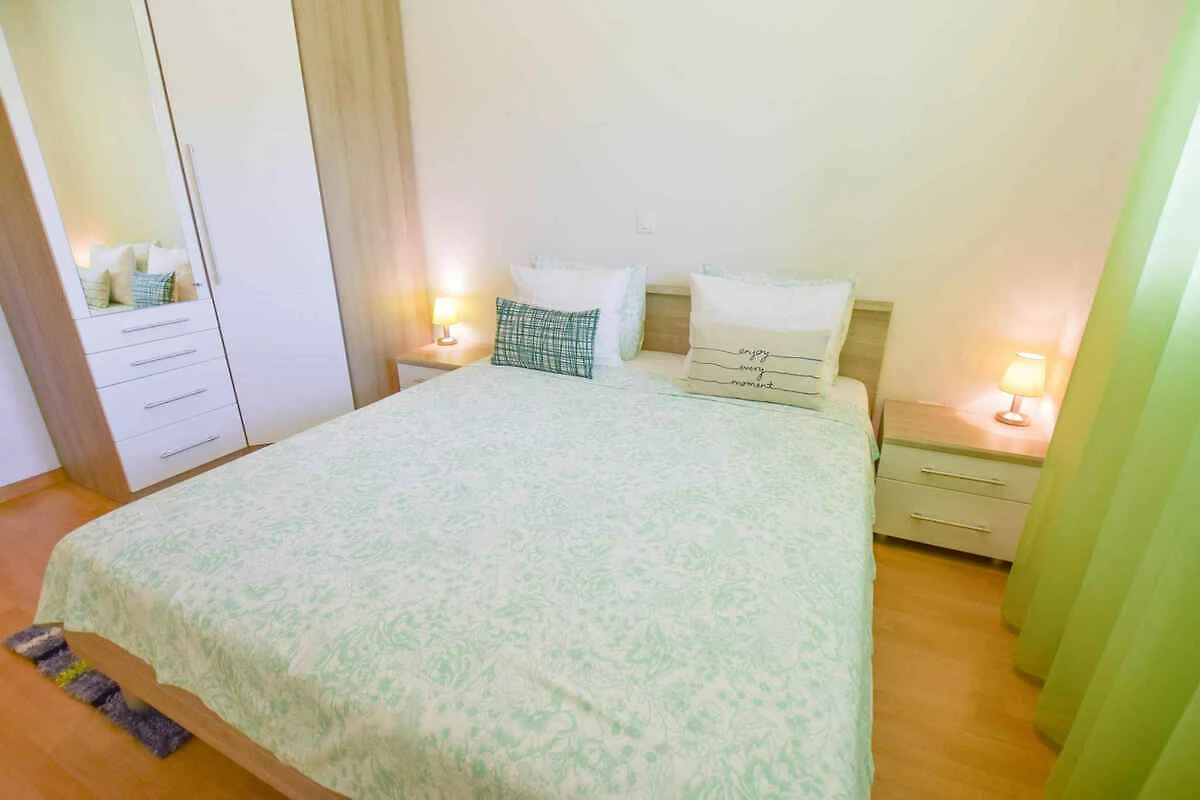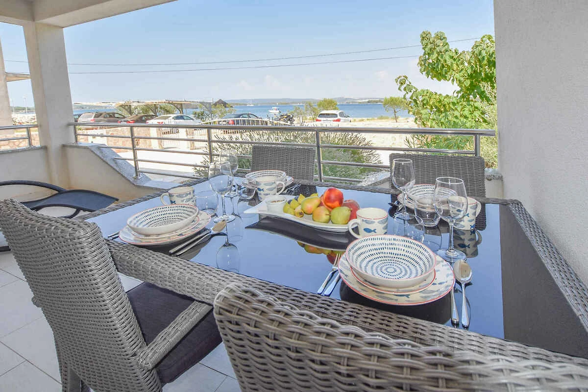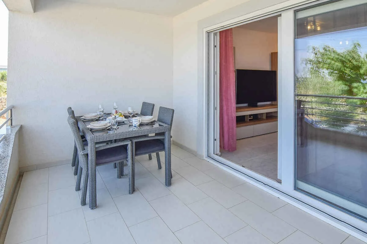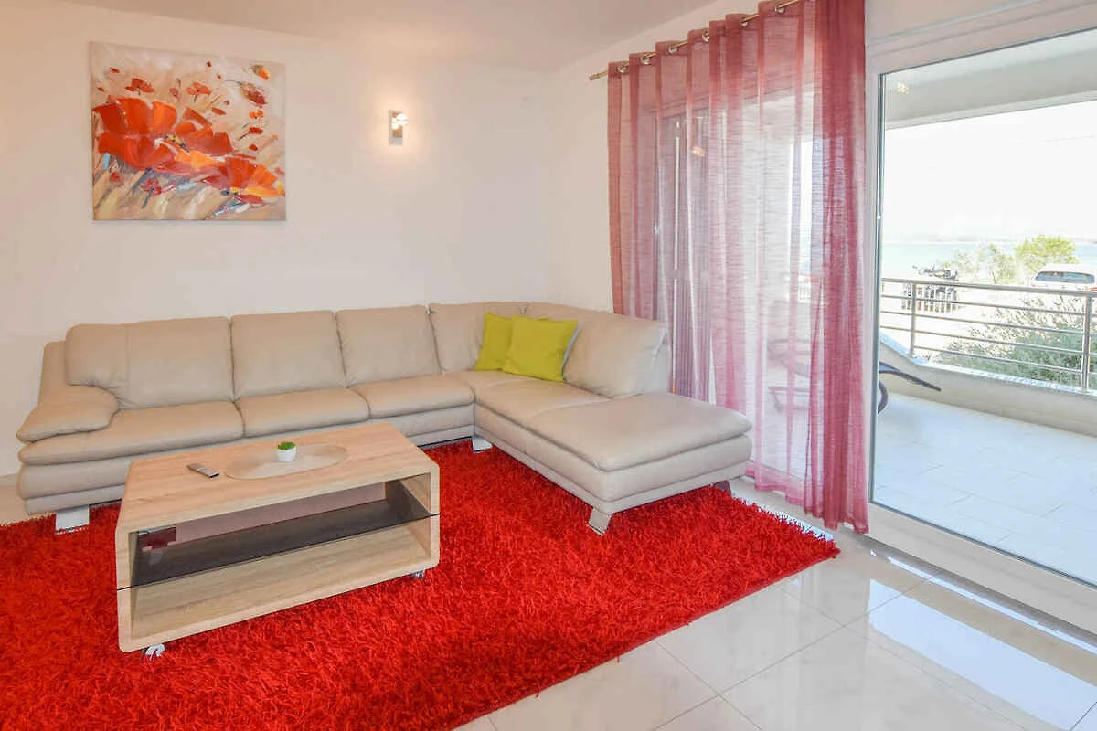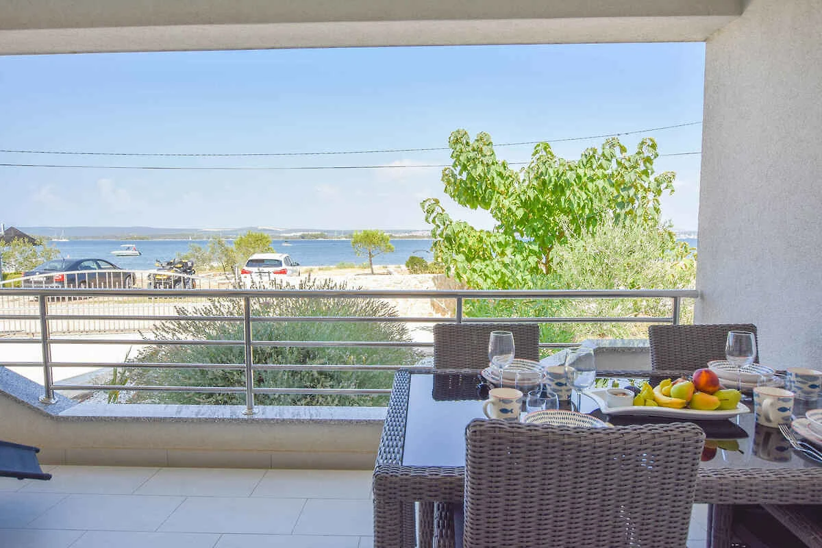 Kraj/Insel Pašman. Die Ferienwohnung befindet sich auf einem geschlossenen Gartengrundstück mit Blumen und Bäumen, von einem Zaun begrenzt. Die Zufahrt erfolgt über eine Nebenstrasse (asphaltiert). Parkplatz auf dem Grundstück.