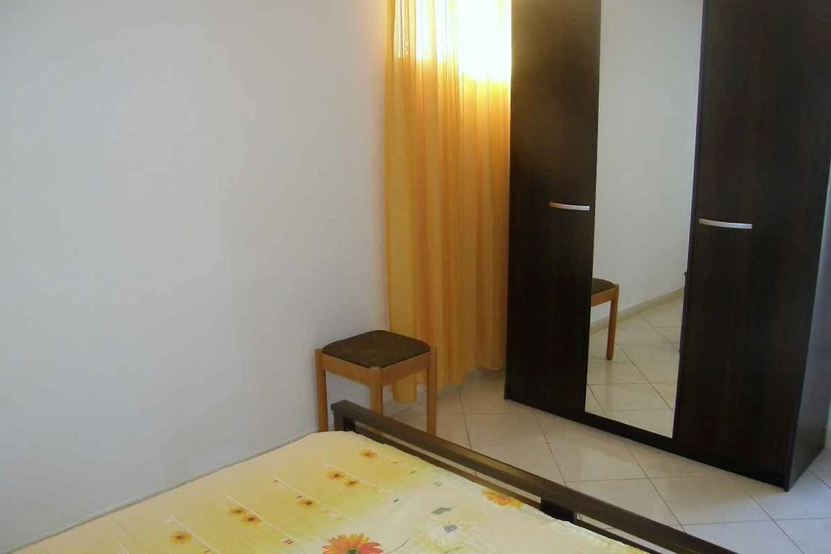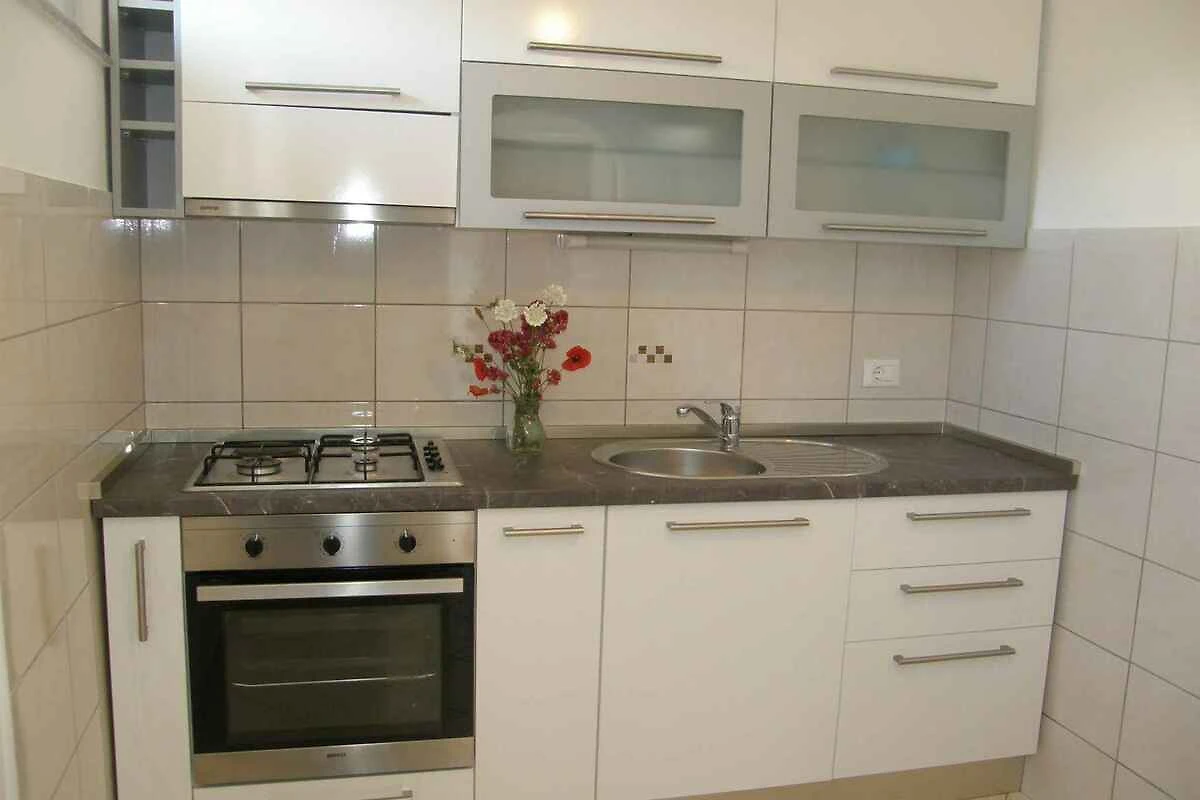 Primošten. Die Ferienwohnung befindet sich auf einem geschlossenen Gartengrundstück mit Blumen und Bäumen, von einer Mauer begrenzt. Der Vermieter wohnt ständig im Haus. Ausblick die Grünfläche und den Hof. Die Zufahrt erfolgt über eine Nebenstrasse (asphaltiert). Parkplatz auf dem Grundstück.